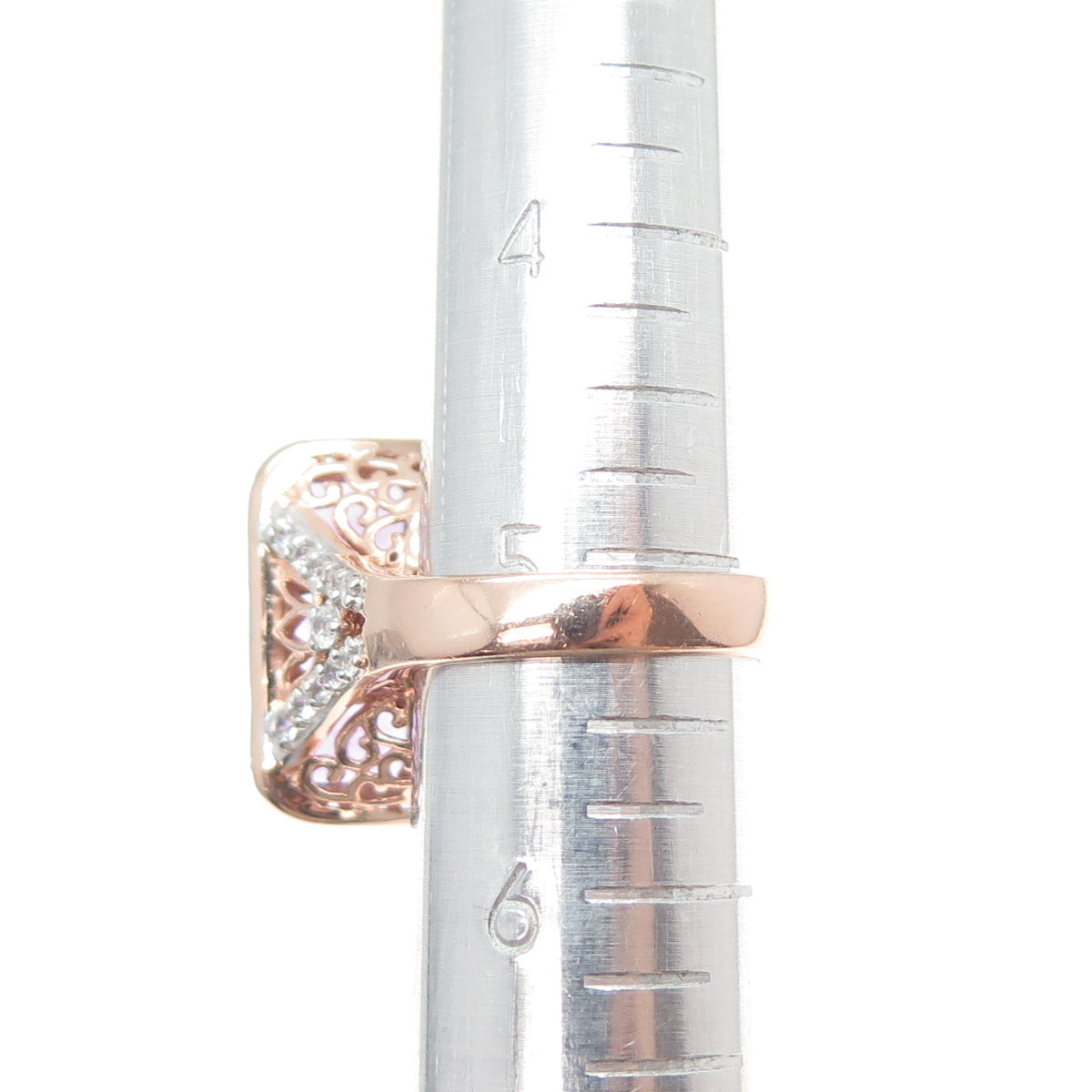 925 Sterling Silver Rose Gold Plated Real Amethyst & White Topaz Ring Size 5.25
