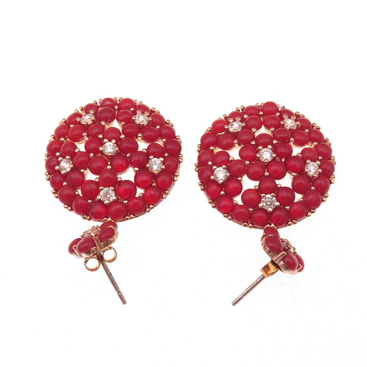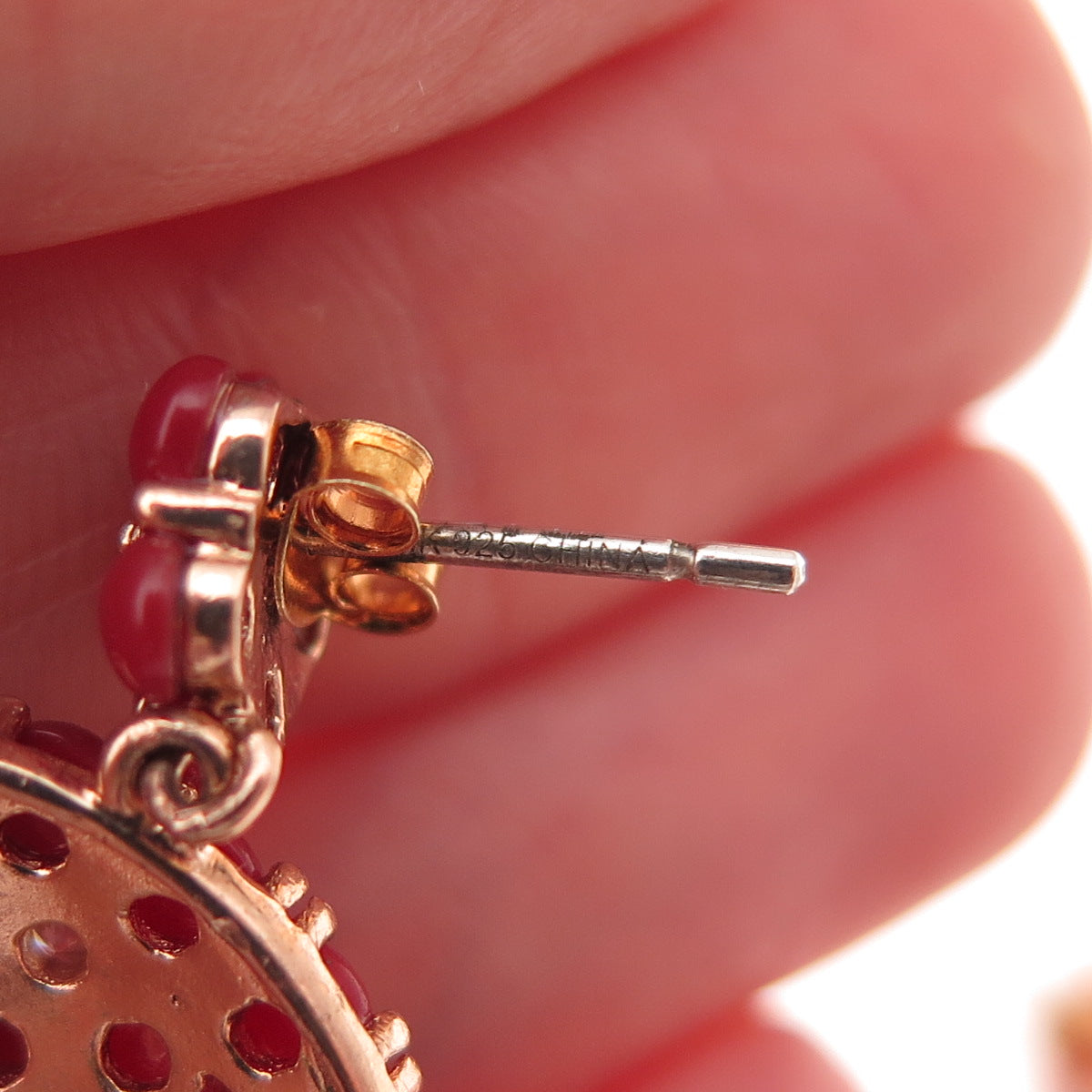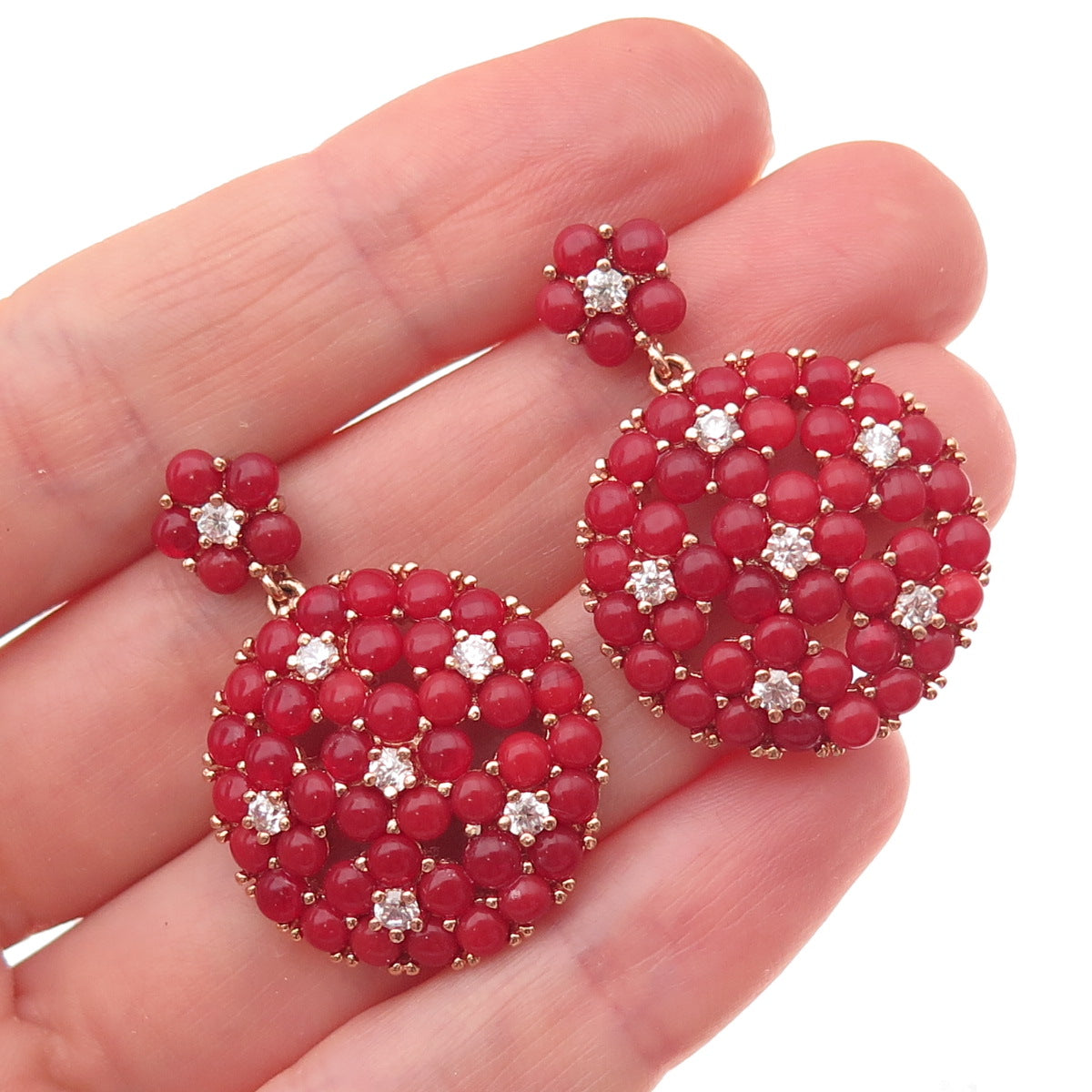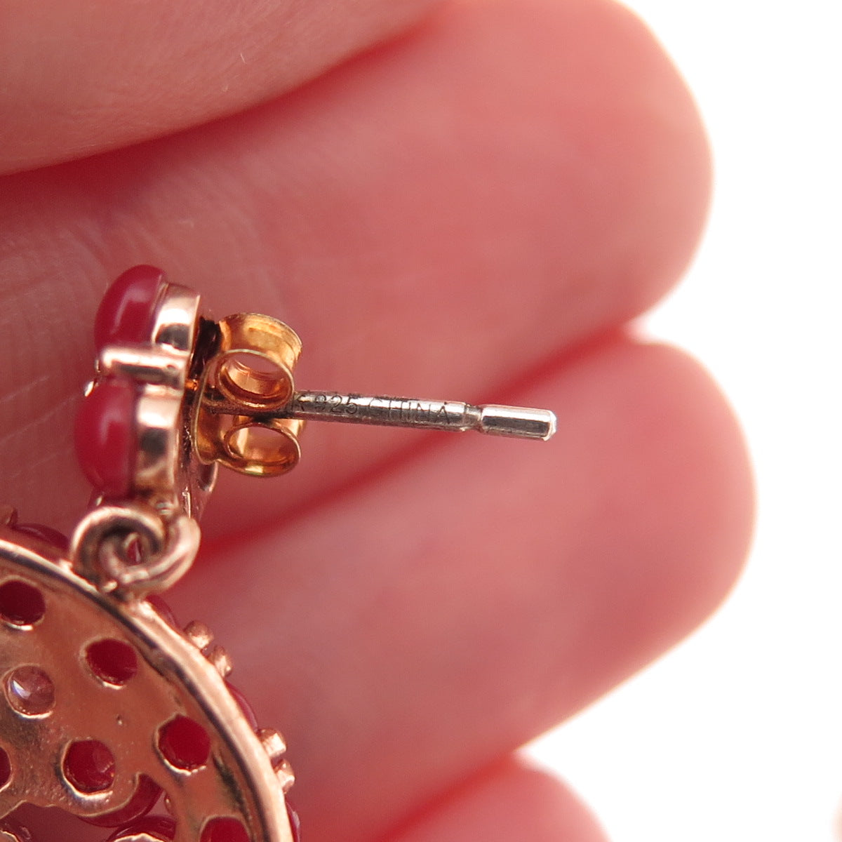 925 Sterling Silver Rose Gold Plated Real Carnelian & C Z Dangle Earrings