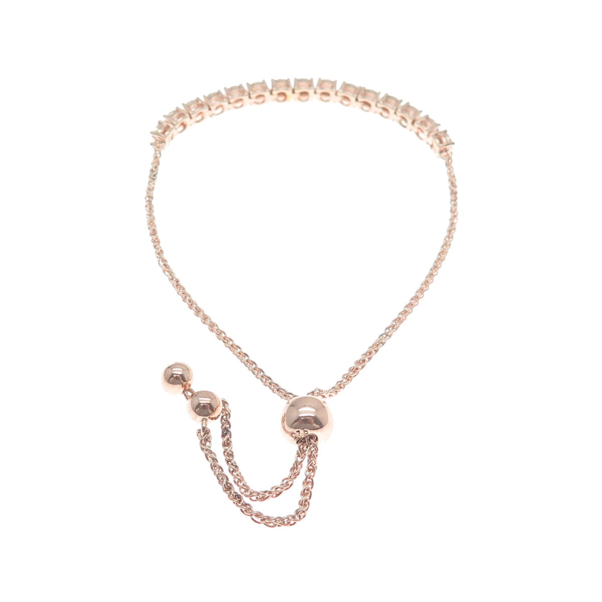 925 Sterling Silver Rose Gold Plated Real Diamond Bolo Adjustable Bracelet 6-9"