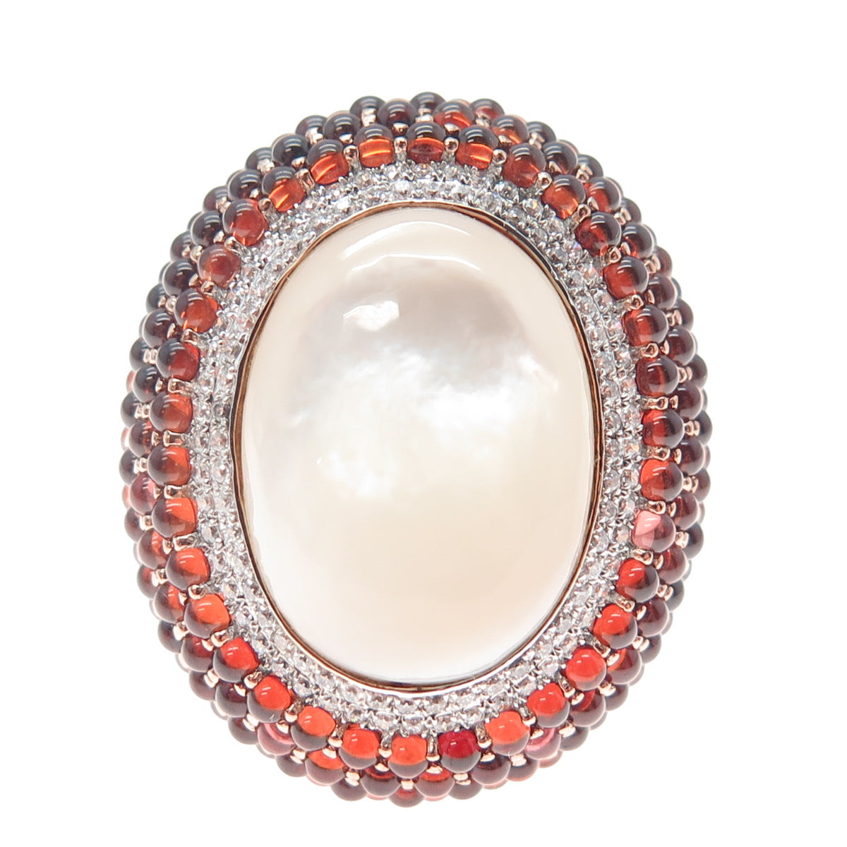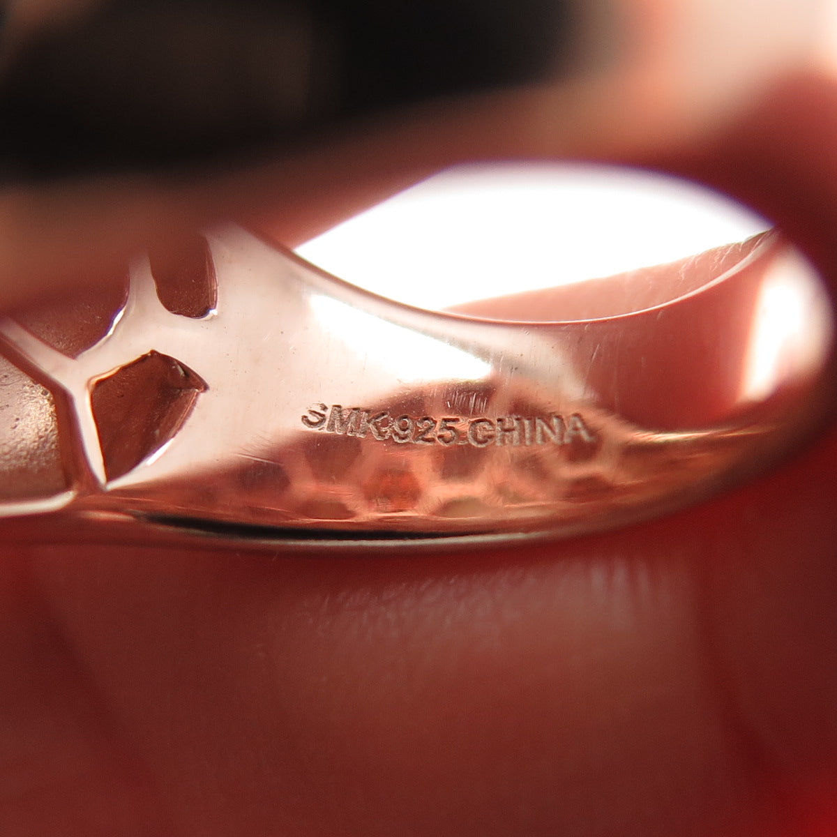 925 Sterling Silver Rose Gold Plated Real MOP Red Garnet & C Z Ring Size 7.25
