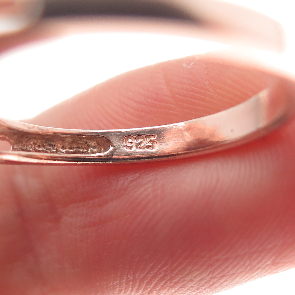 925 Sterling Silver Rose Gold Plated Real Smoky Quartz & C Z Ring Size 7.5