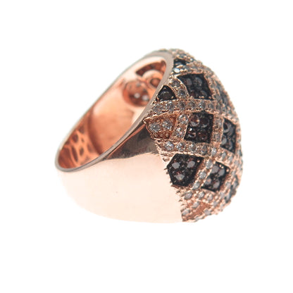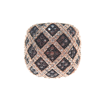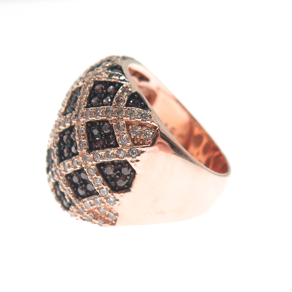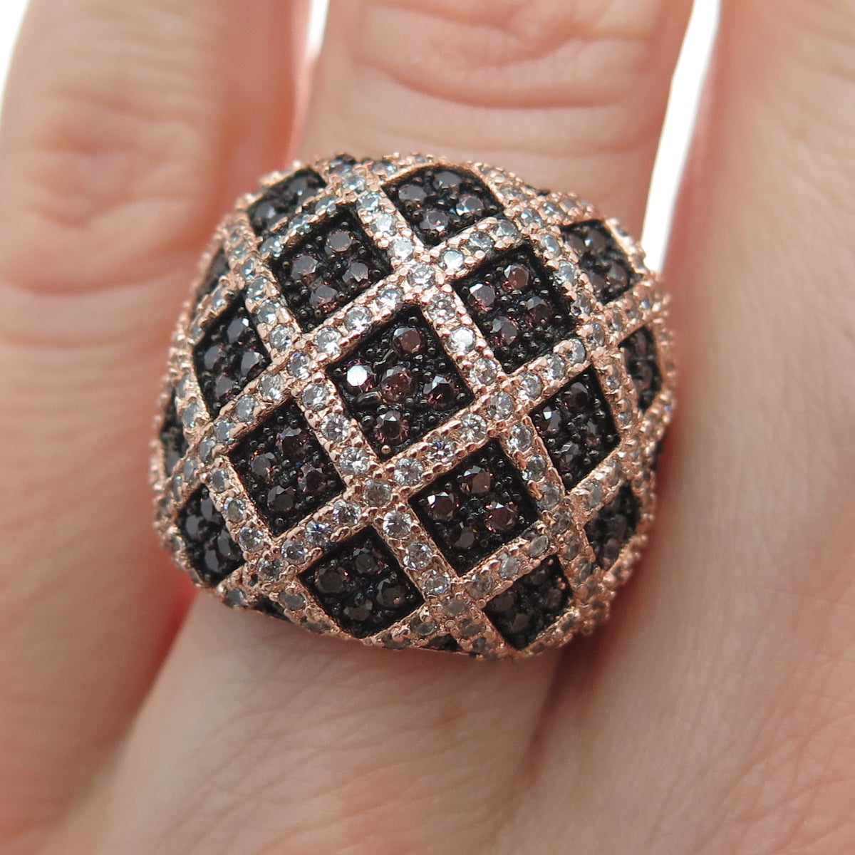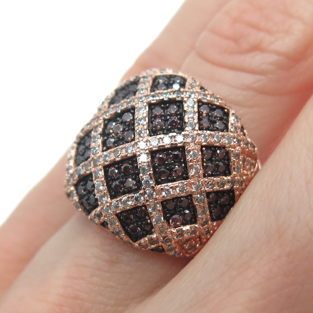 925 Sterling Silver Rose Gold Plated White & Cognac C Z Cage Dome Ring Size 5.25