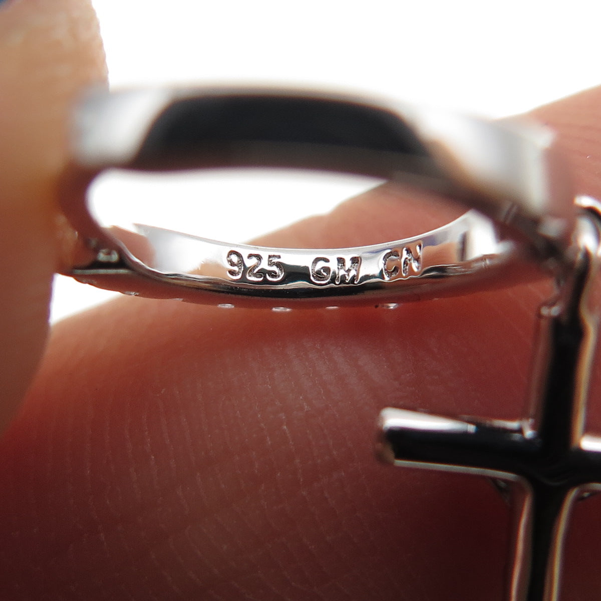 925 Sterling Silver Round-Cut C Z Crucifix Cross Dangle Hoop Earrings