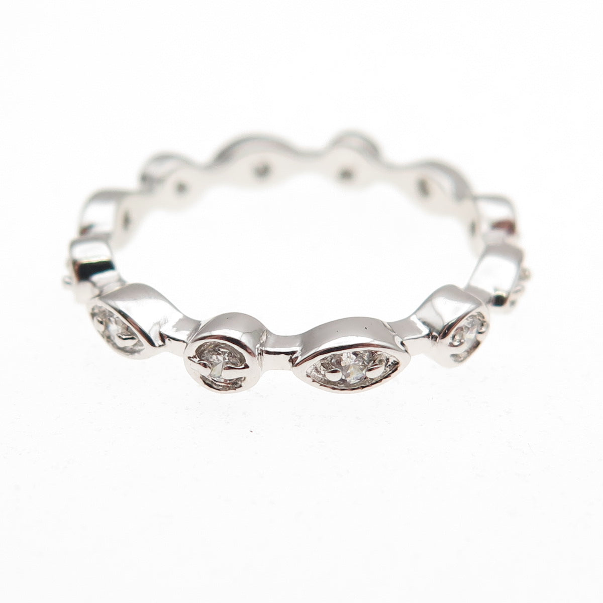 925 Sterling Silver Round-Cut C Z Eternity Stackable Band Ring Size 6