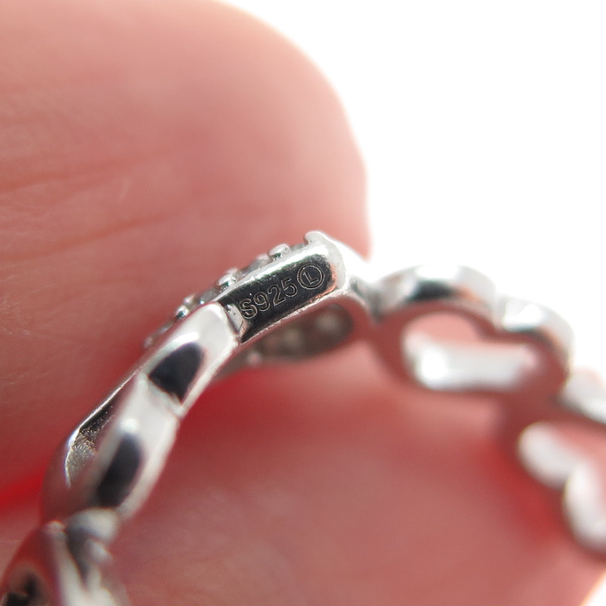 925 Sterling Silver Round-Cut C Z Heart All Around Ring Size 8