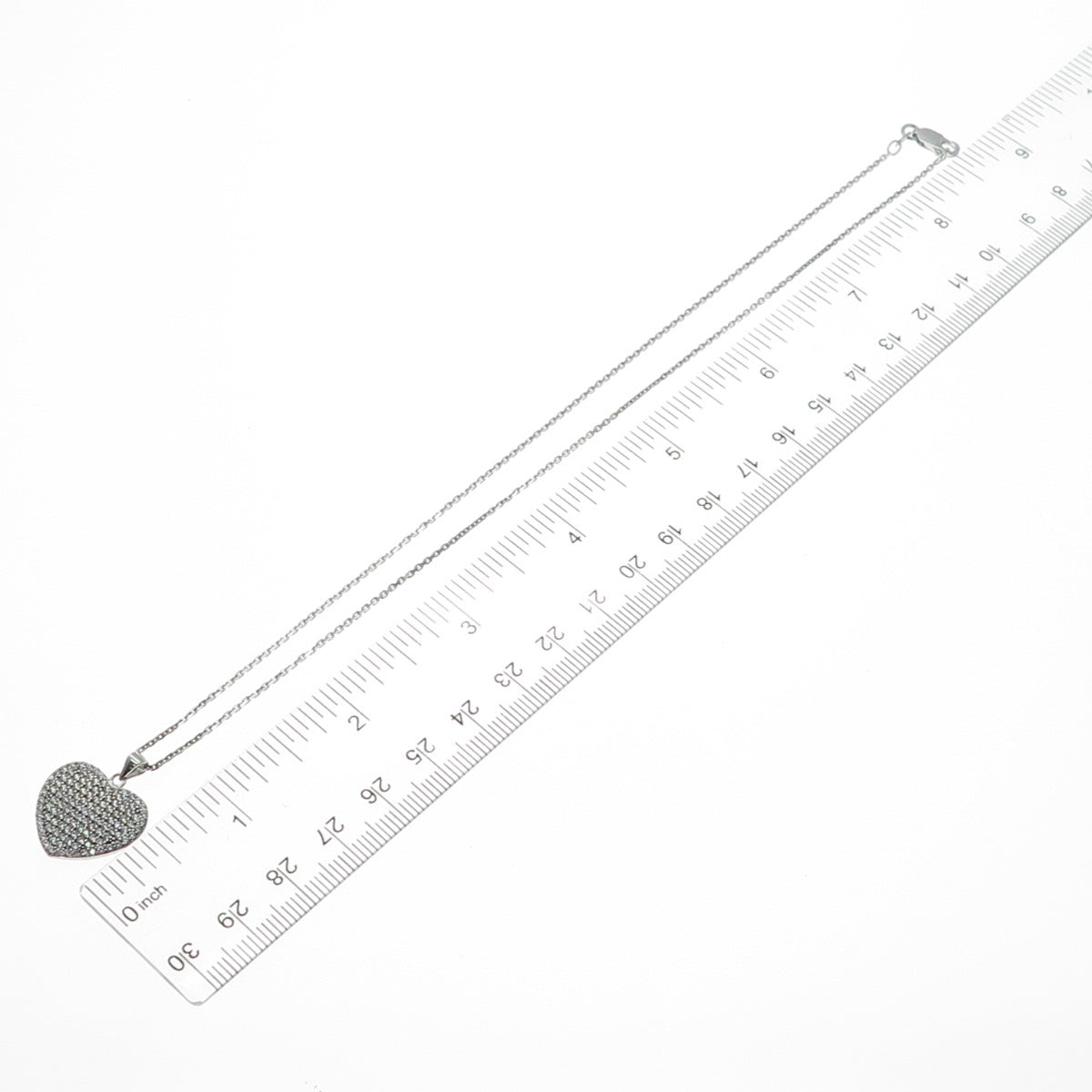 925 Sterling Silver Round-Cut C Z Heart Cable Chain Necklace 18"