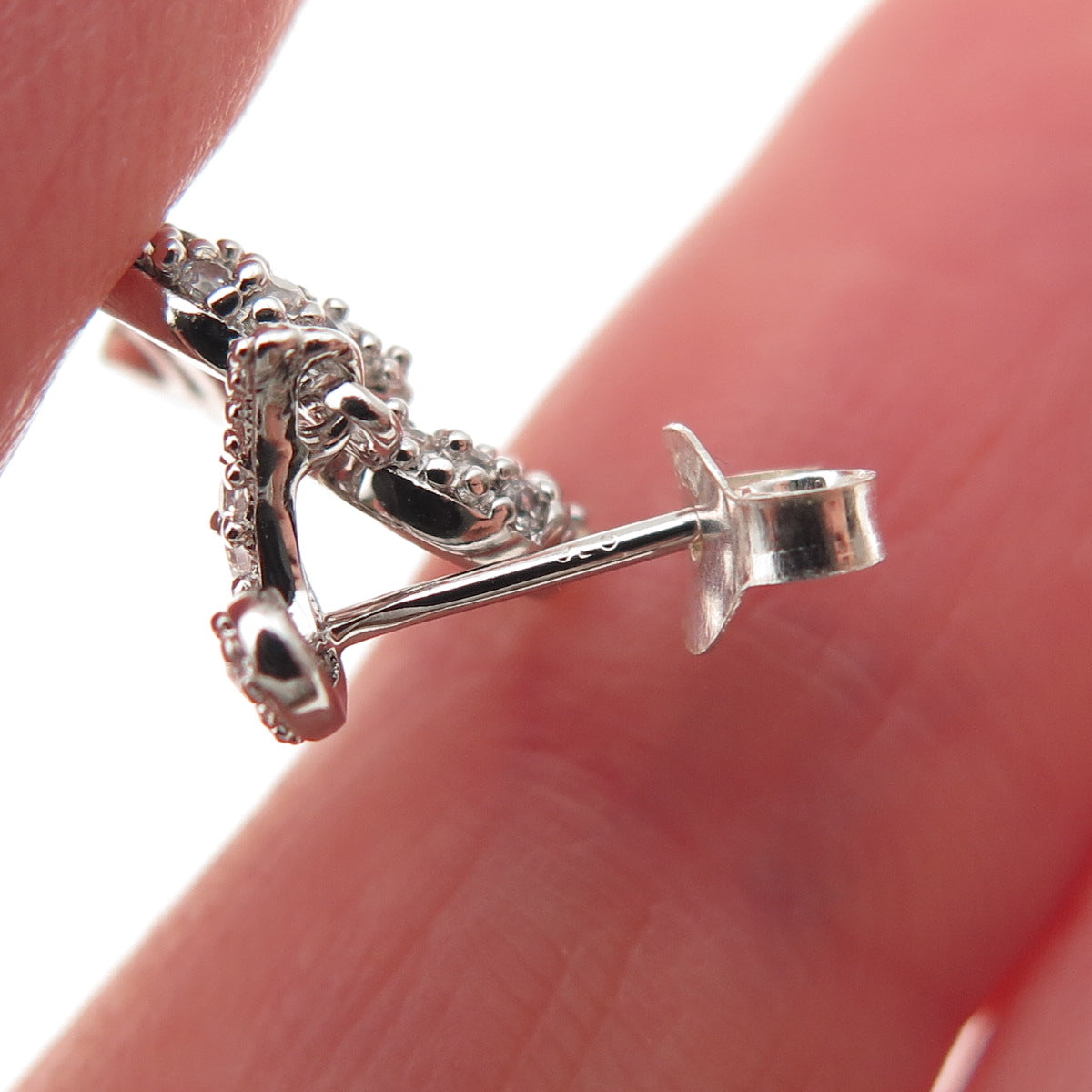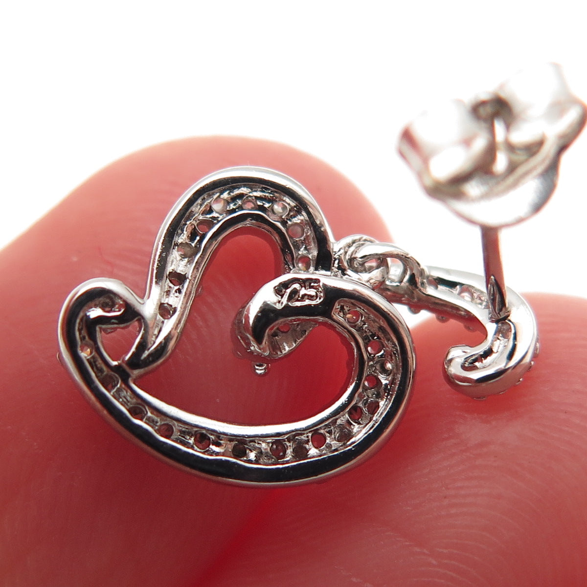 925 Sterling Silver Round-Cut C Z Heart Dangle Earrings