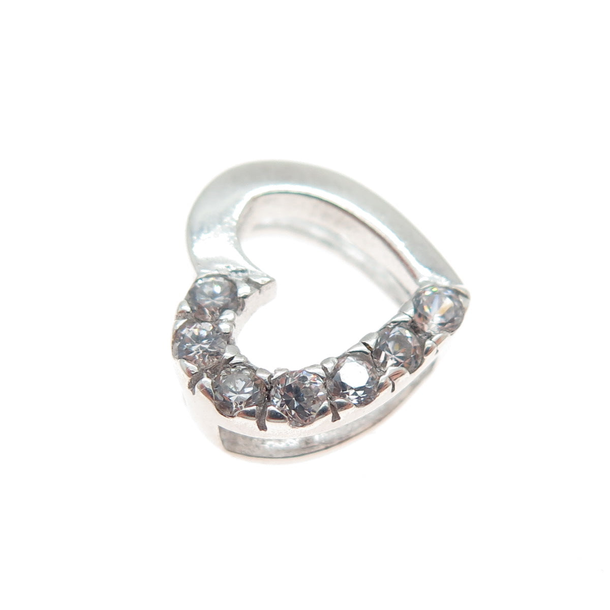 925 Sterling Silver Round-Cut C Z Heart Minimalist Slide Charm Pendant