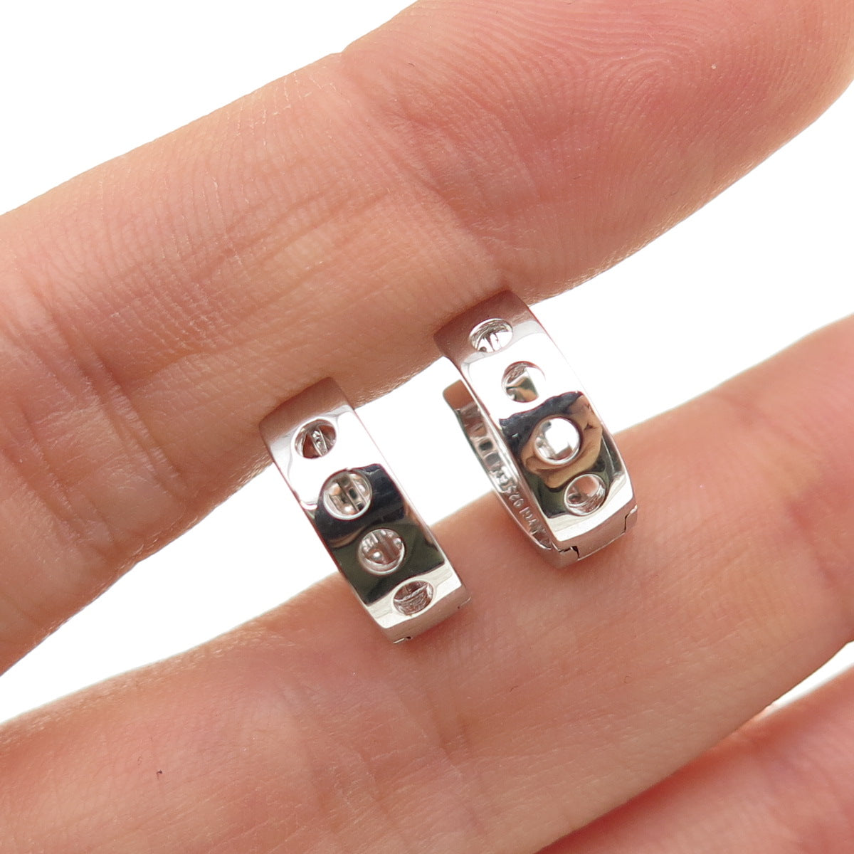 925 Sterling Silver Round-Cut C Z Hoop Earrings