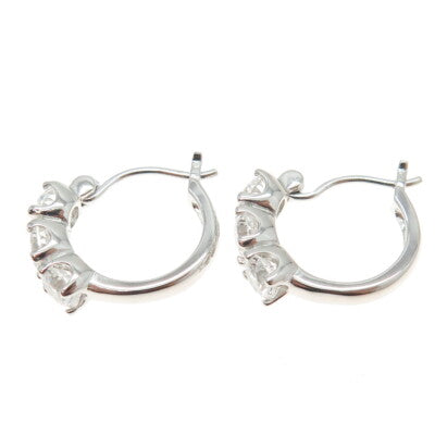 925 Sterling Silver Round-Cut C Z Hoop Earrings