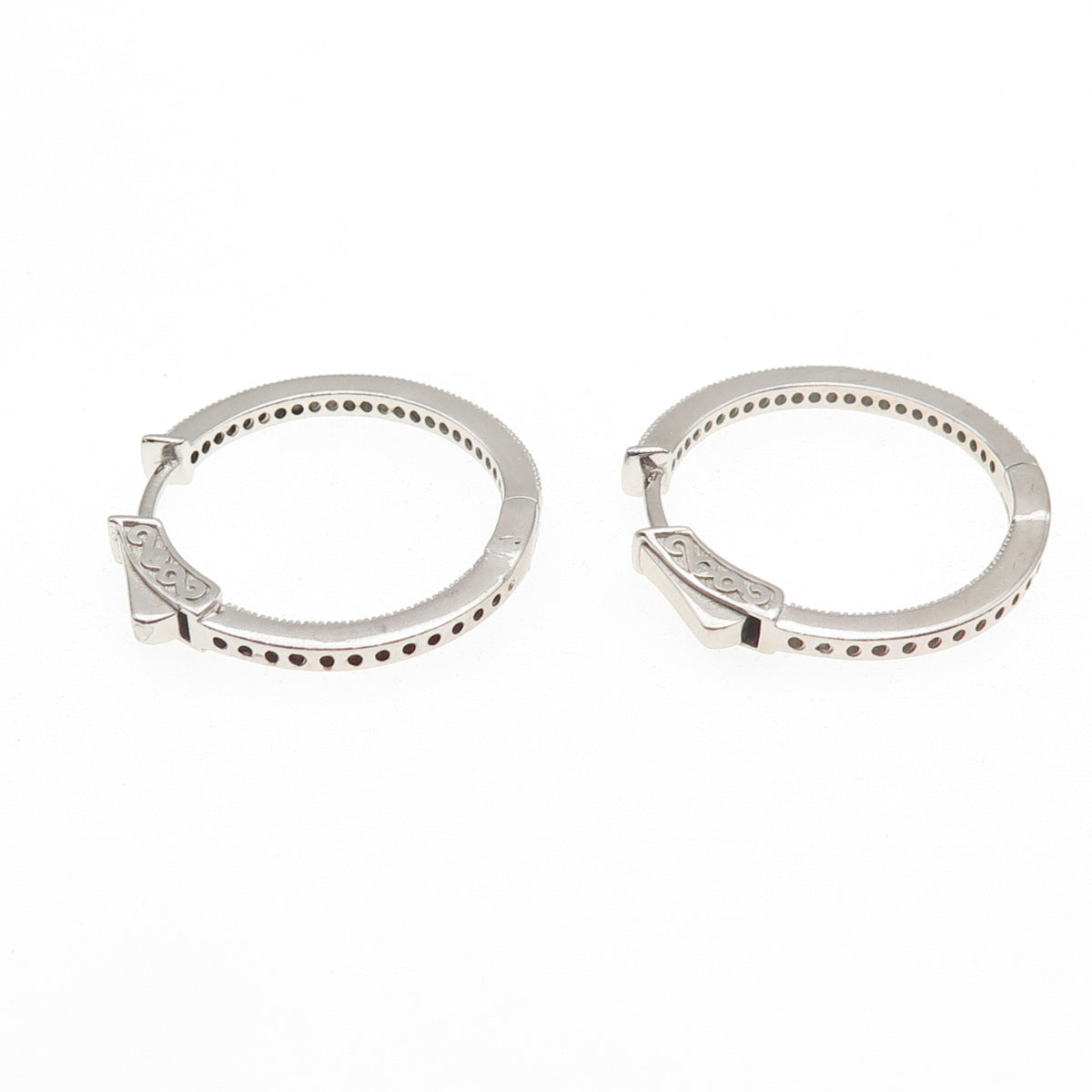 925 Sterling Silver Round-Cut C Z In & Out Hoop Earrings