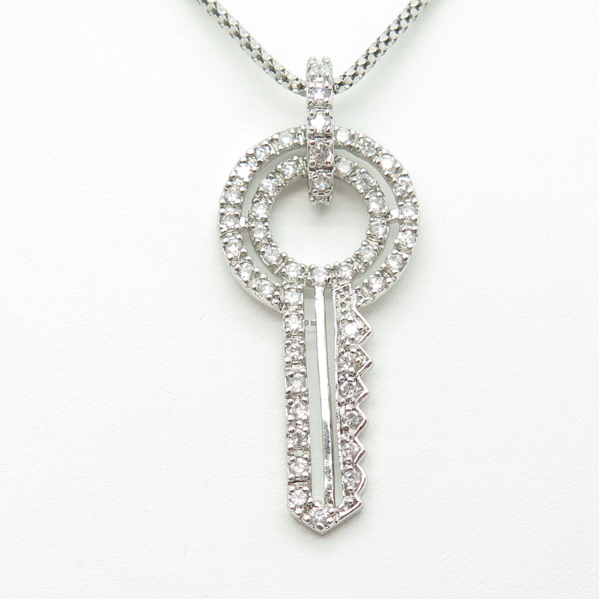 925 Sterling Silver Round-Cut C Z Key Flat Popcorn Chain Necklace 16"