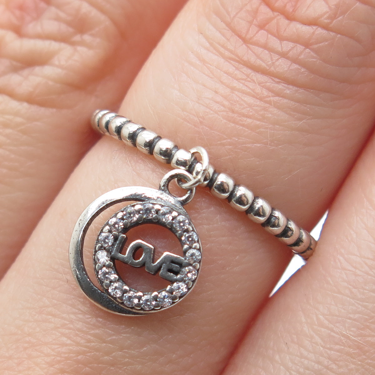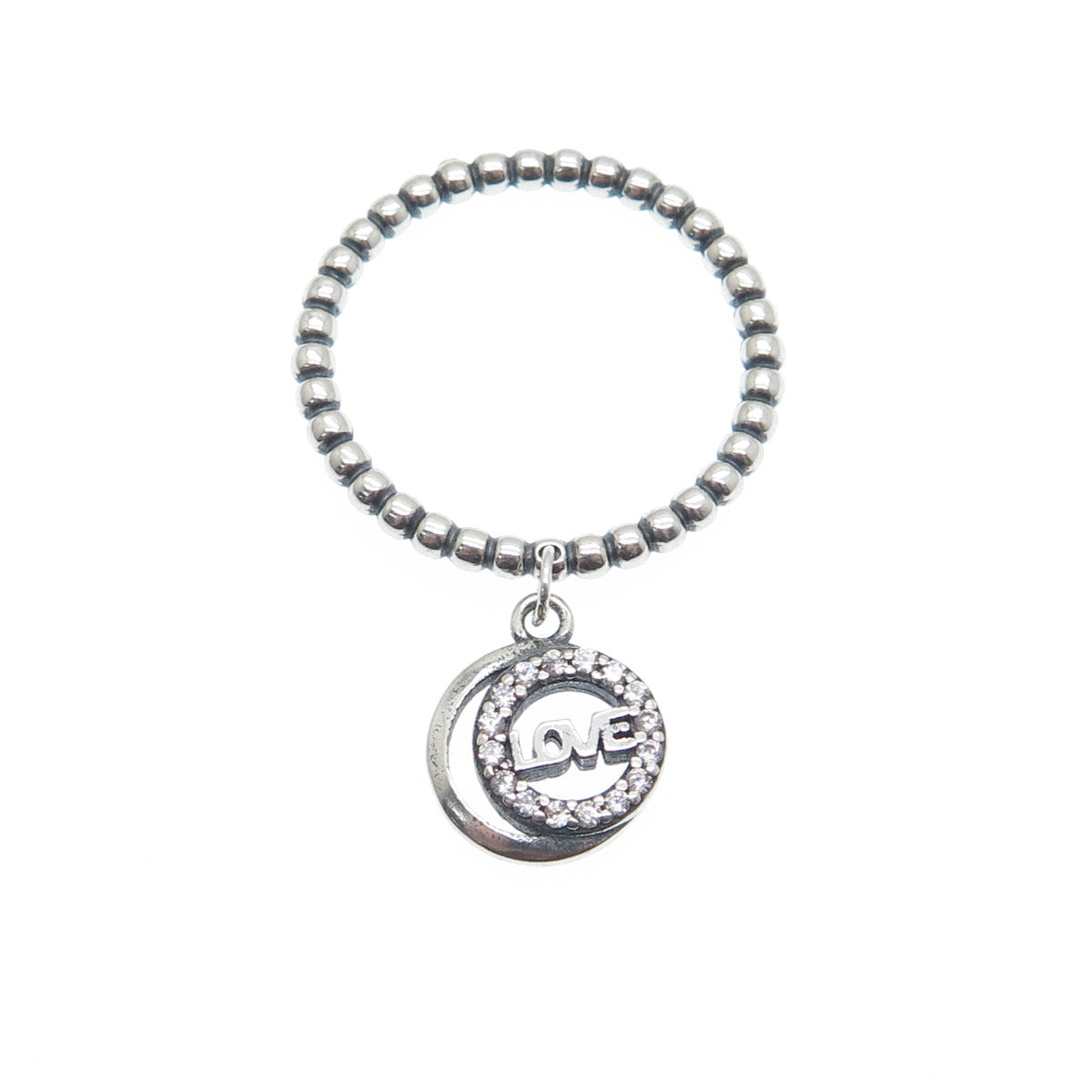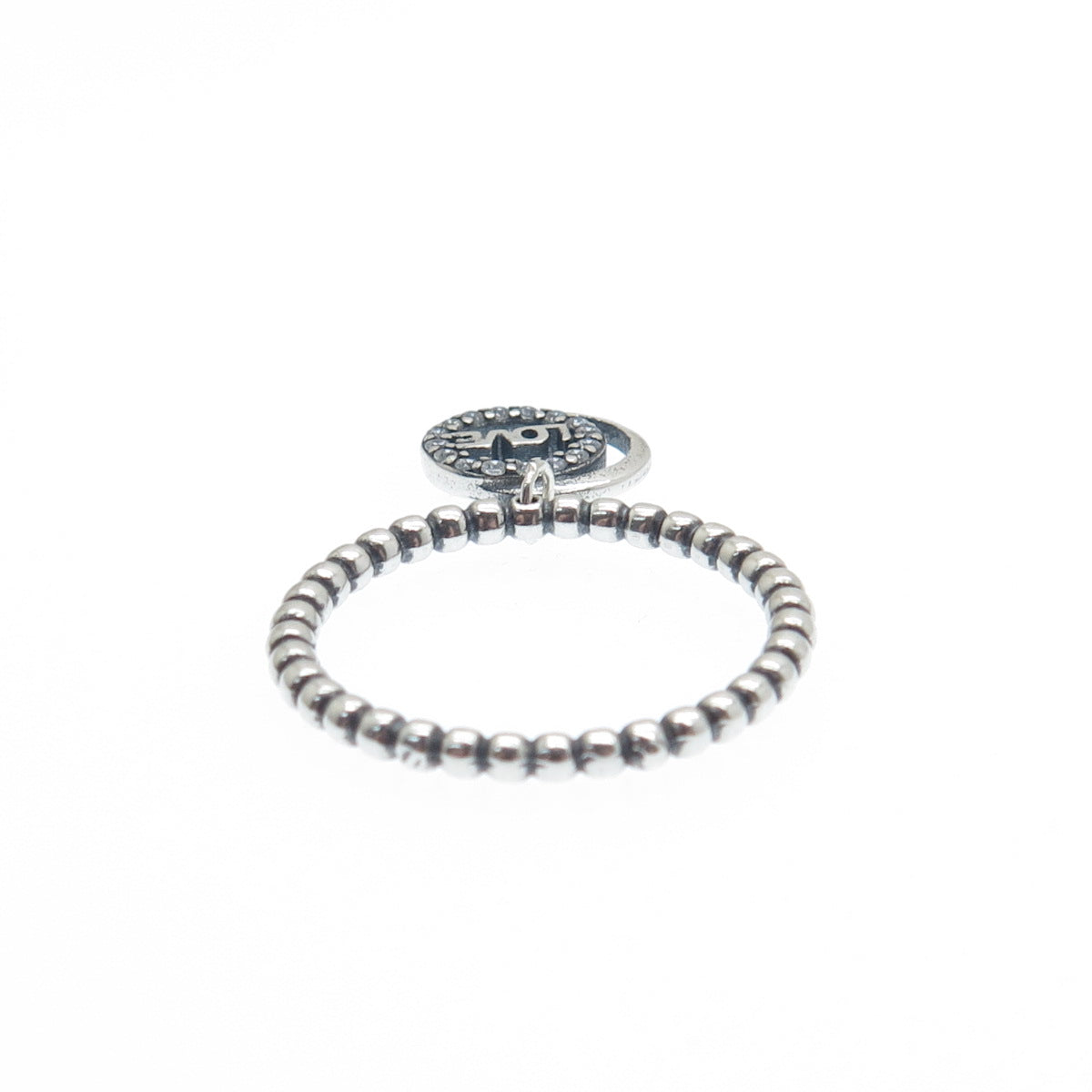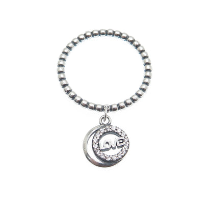 925 Sterling Silver Round-Cut C Z Love Crescent Charm Beaded Ring Size 6.75