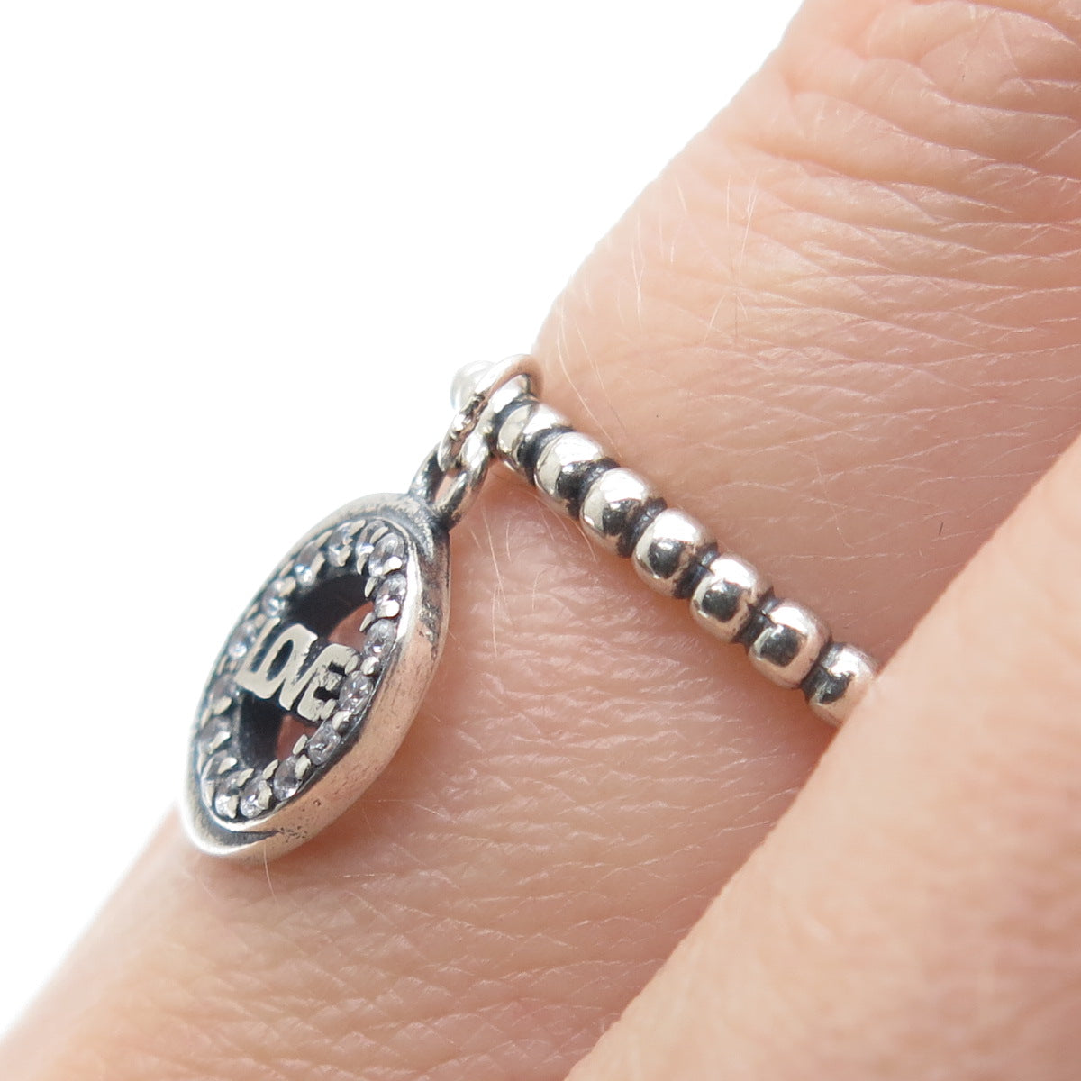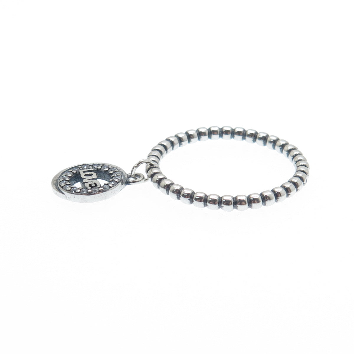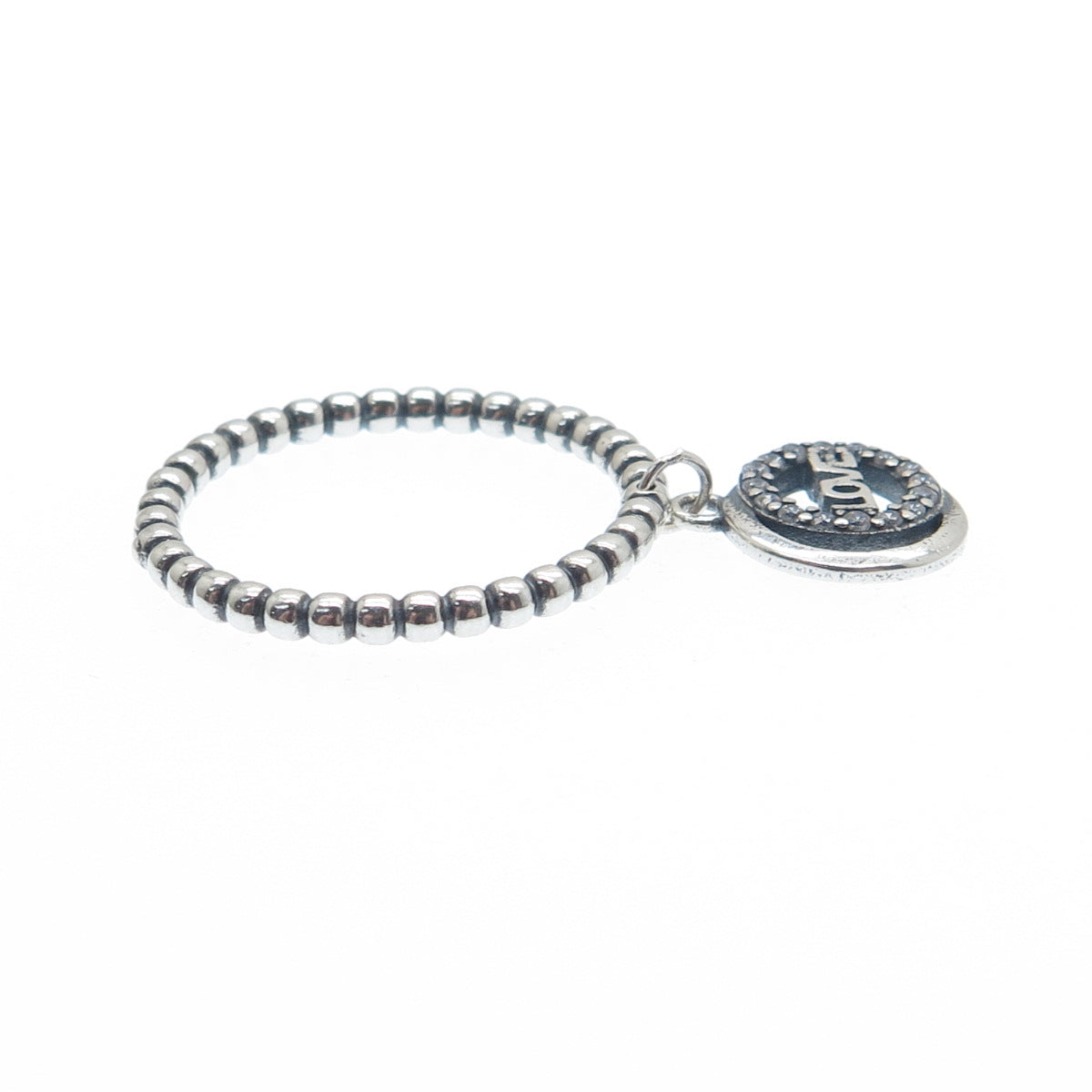 925 Sterling Silver Round-Cut C Z Love Crescent Charm Beaded Ring Size 6.75