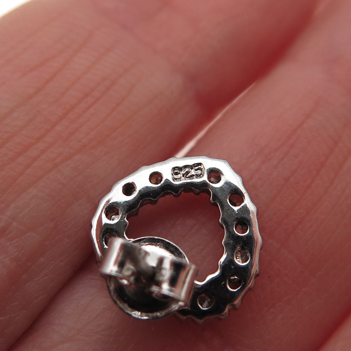925 Sterling Silver Round-Cut C Z Open Heart Stud Earrings