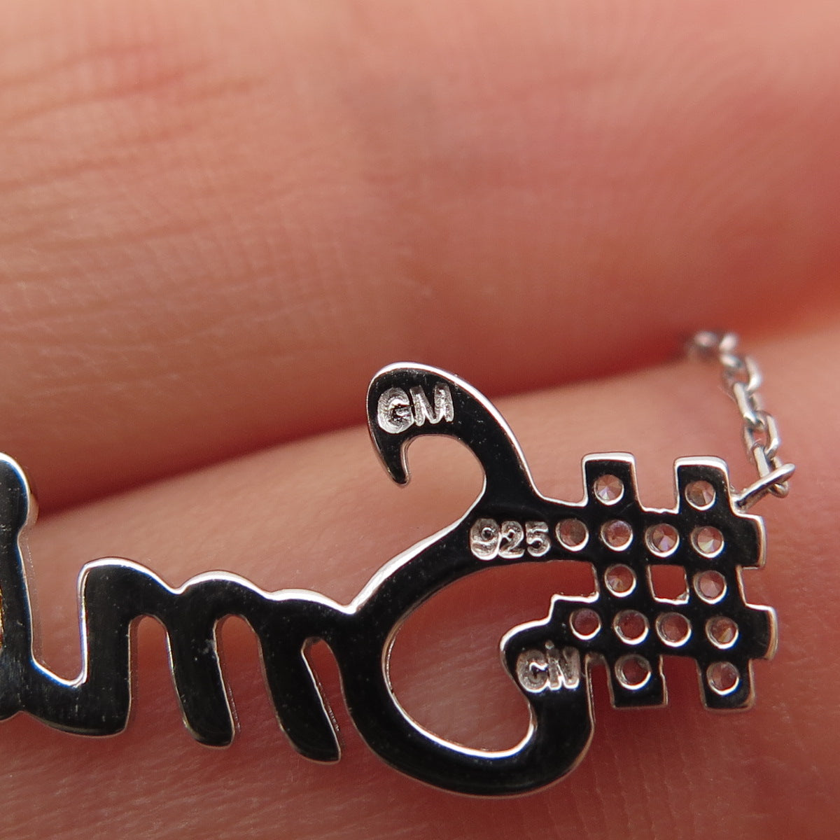 925 Sterling Silver Round-Cut C Z #Smile Cable Chain Necklace 16-18"