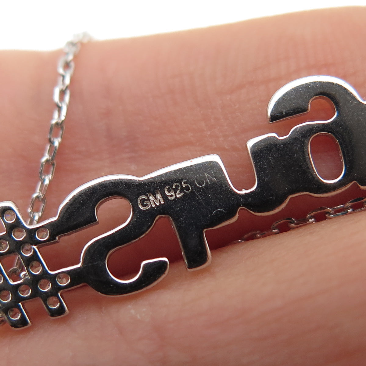925 Sterling Silver Round-Cut C Z #Smile Cable Chain Necklace 16-18"
