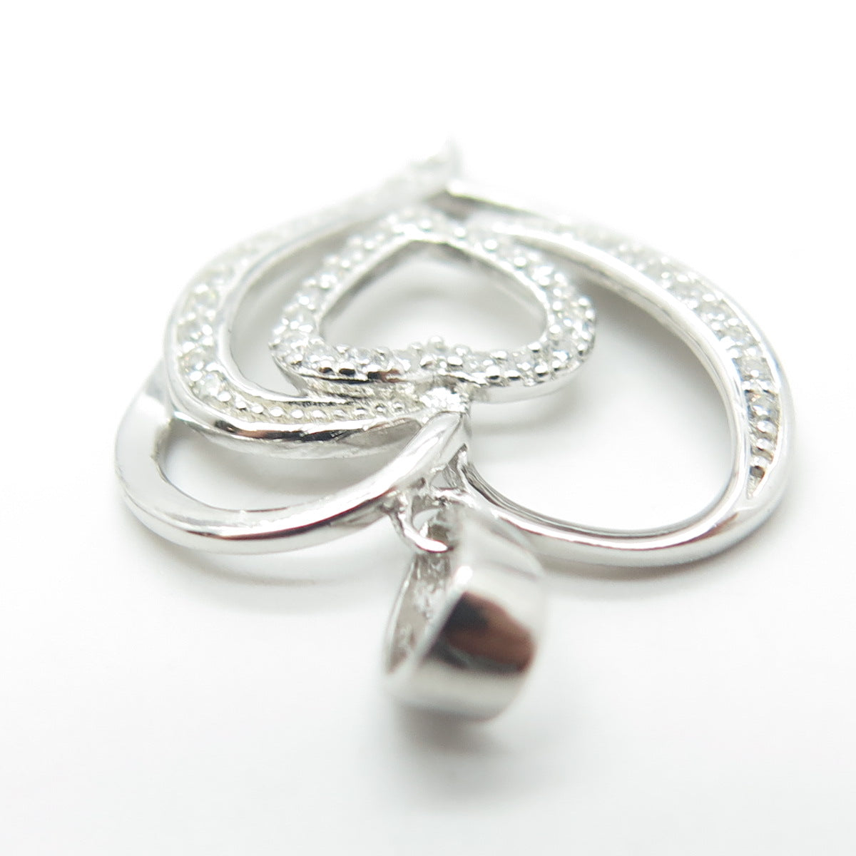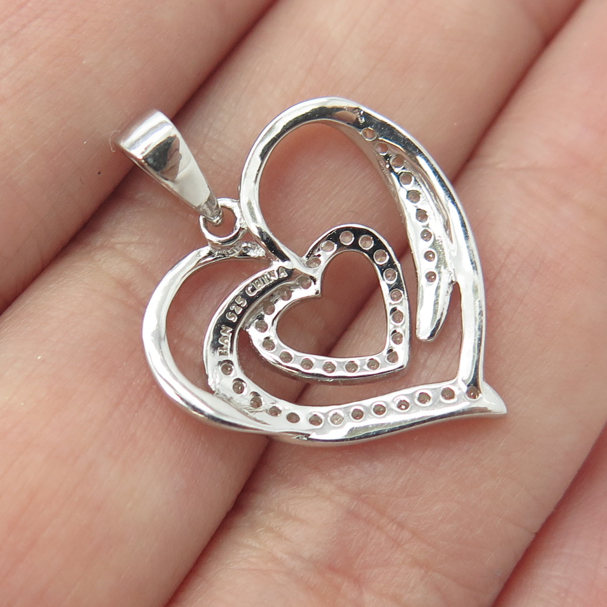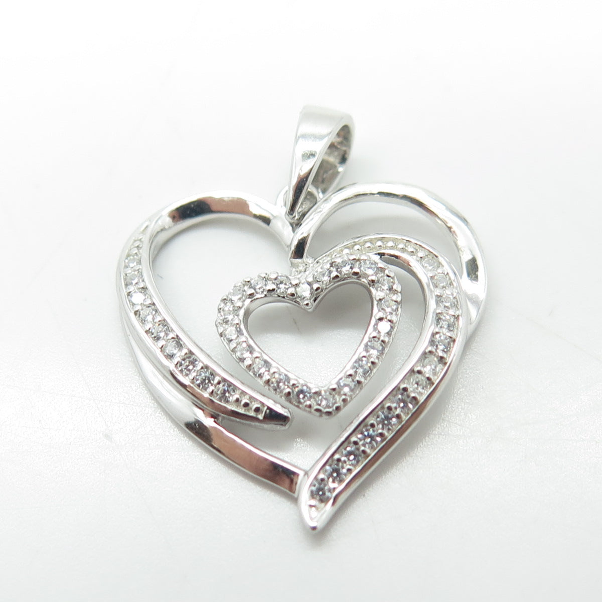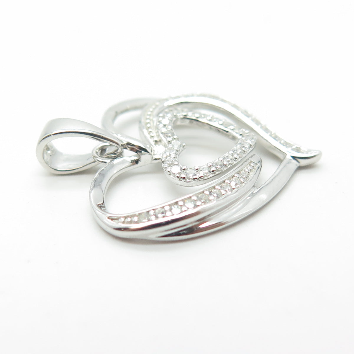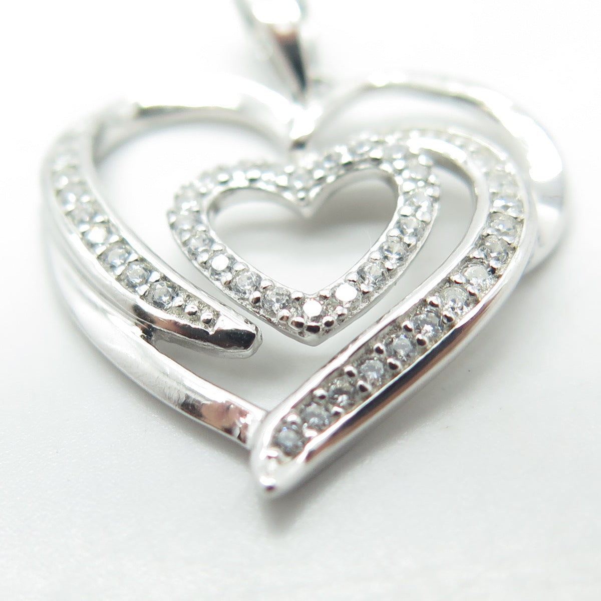 925 Sterling Silver Round-Cut C Z Sparkling Heart Pendant