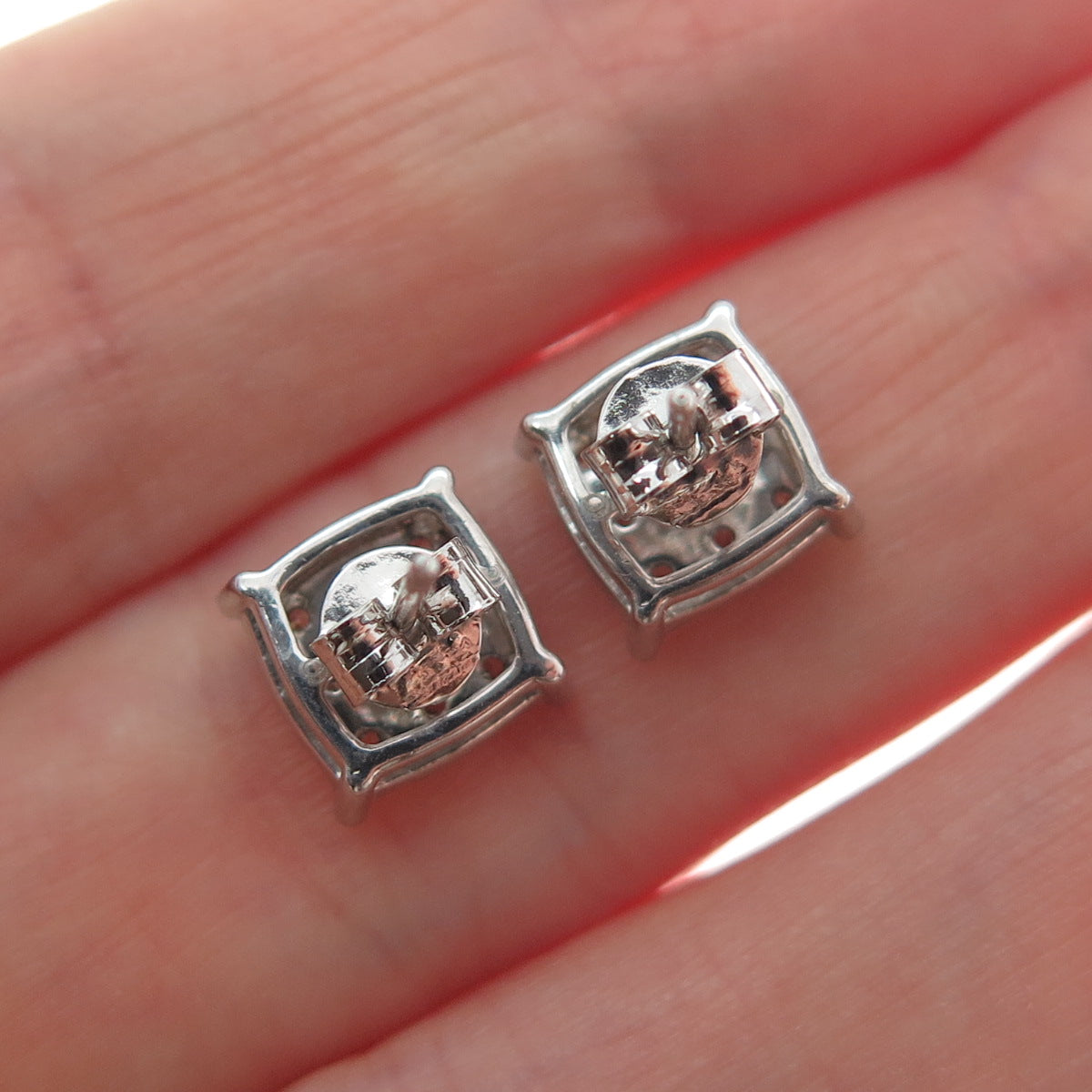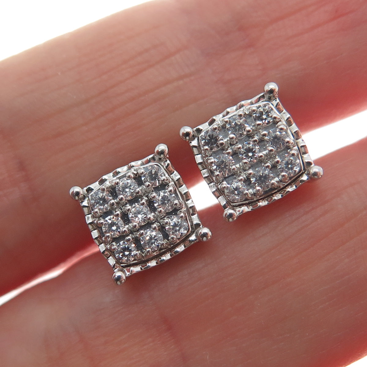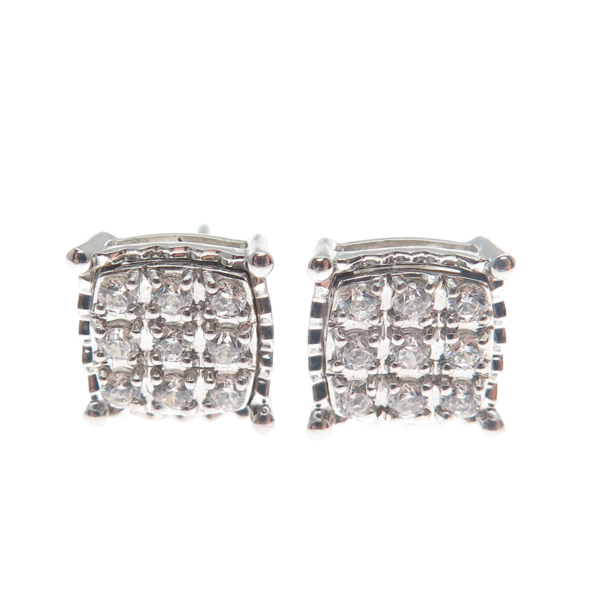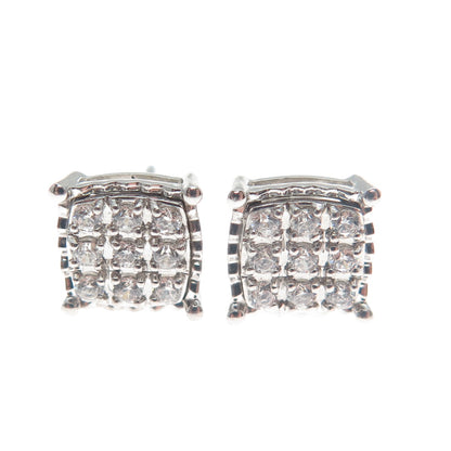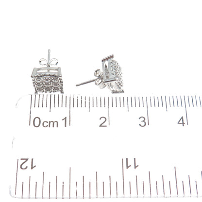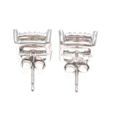 925 Sterling Silver Round-Cut Shaped C Z Sparkle Square Stud Earrings