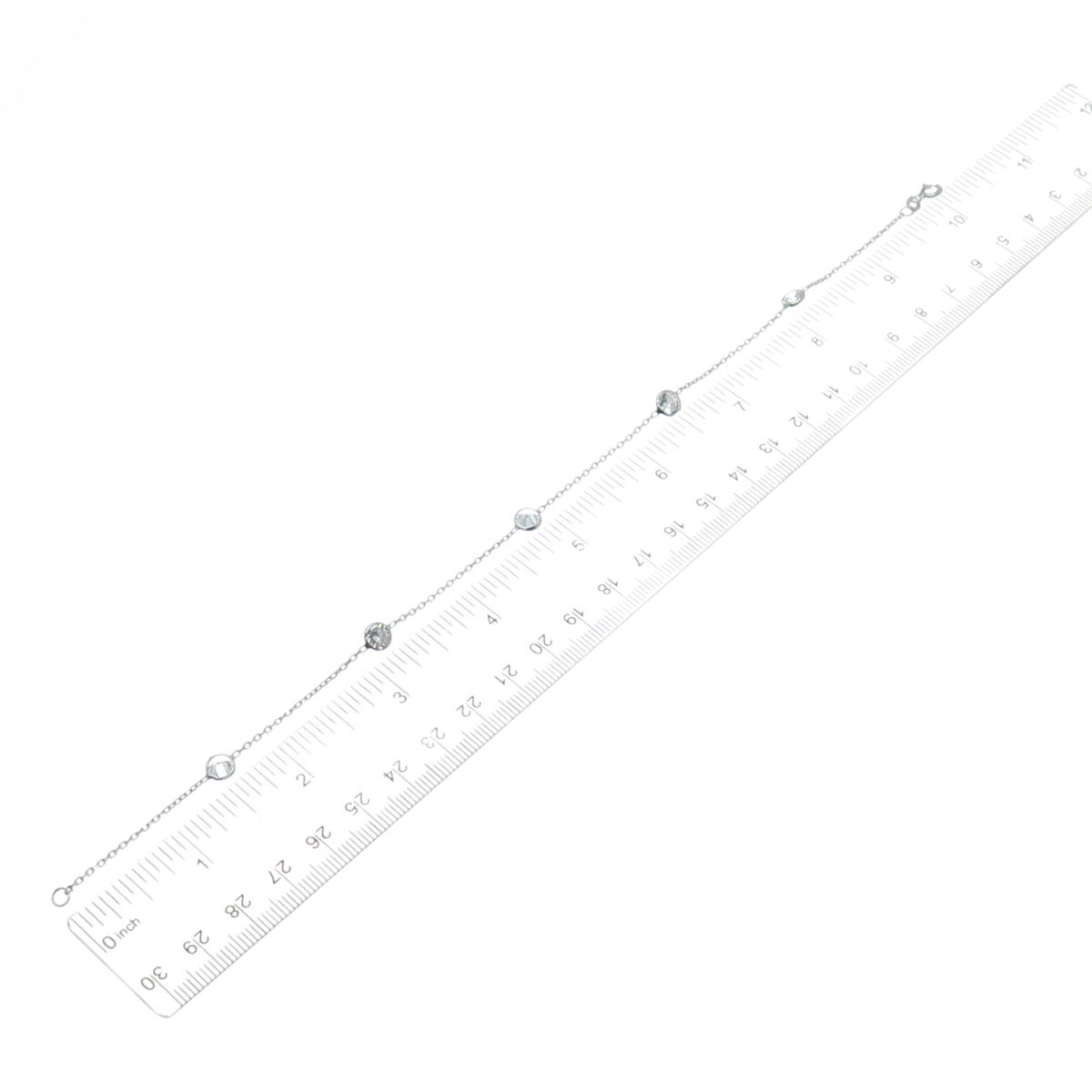 925 Sterling Silver Round-Cut Shaped C Z Station Cable Link Anklet/Bracelet 10"