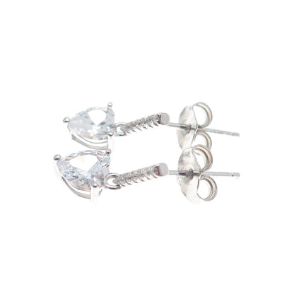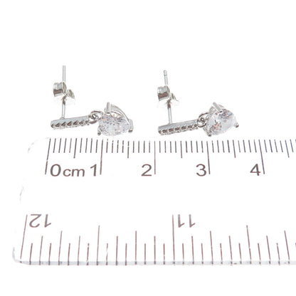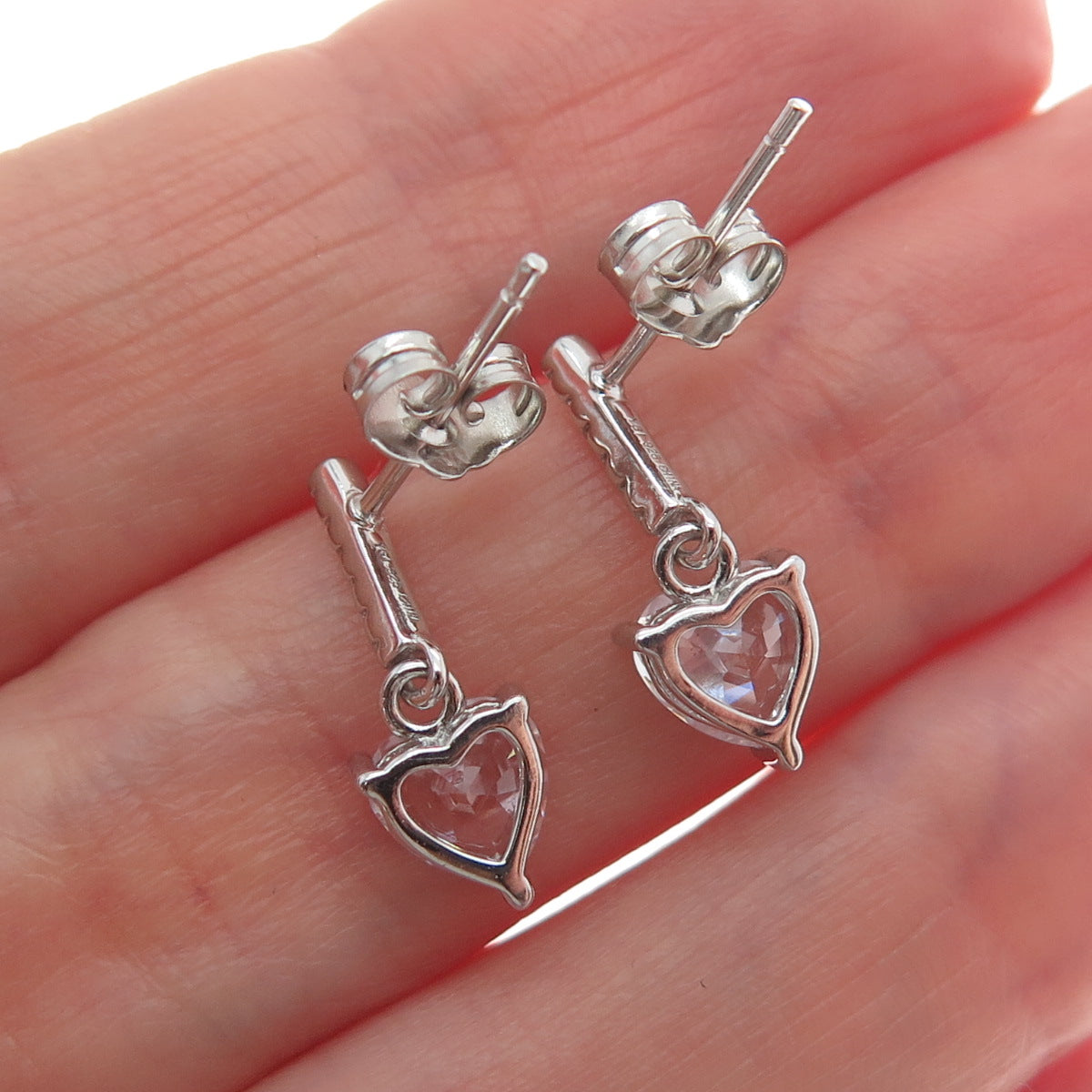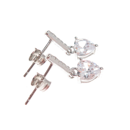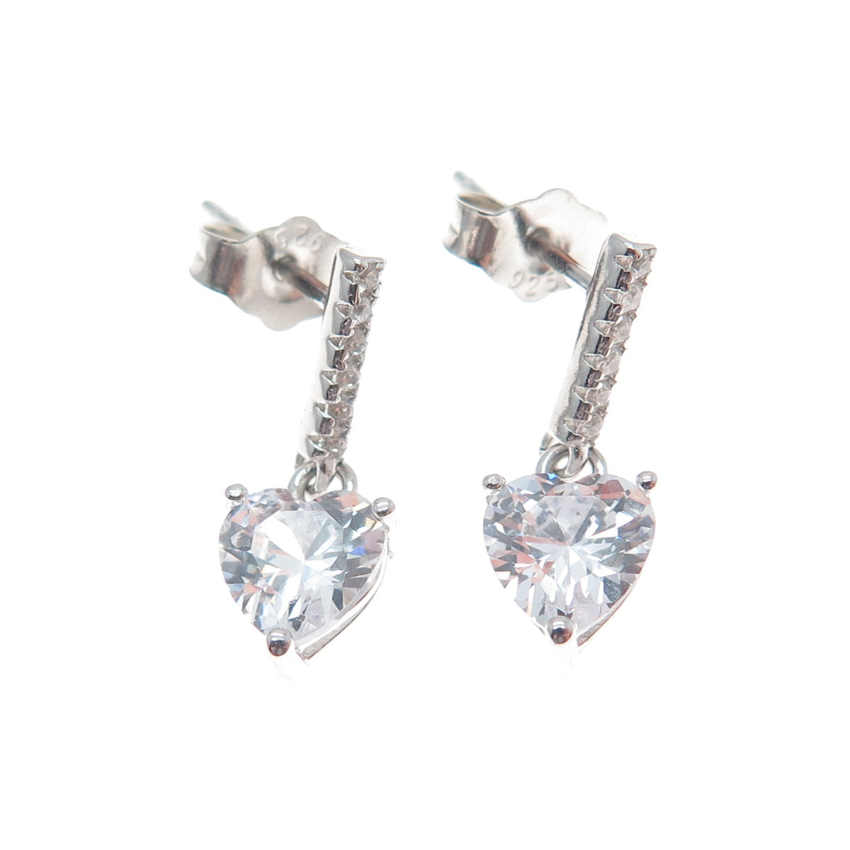 925 Sterling Silver Round & Heart-Cut Drop Dangle Earrings