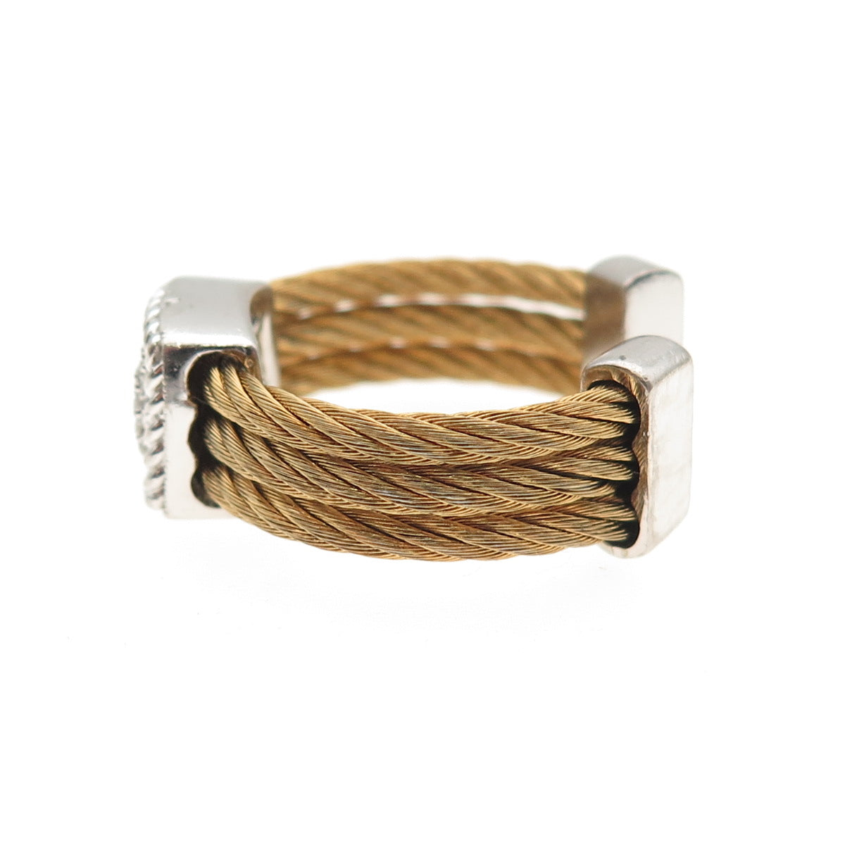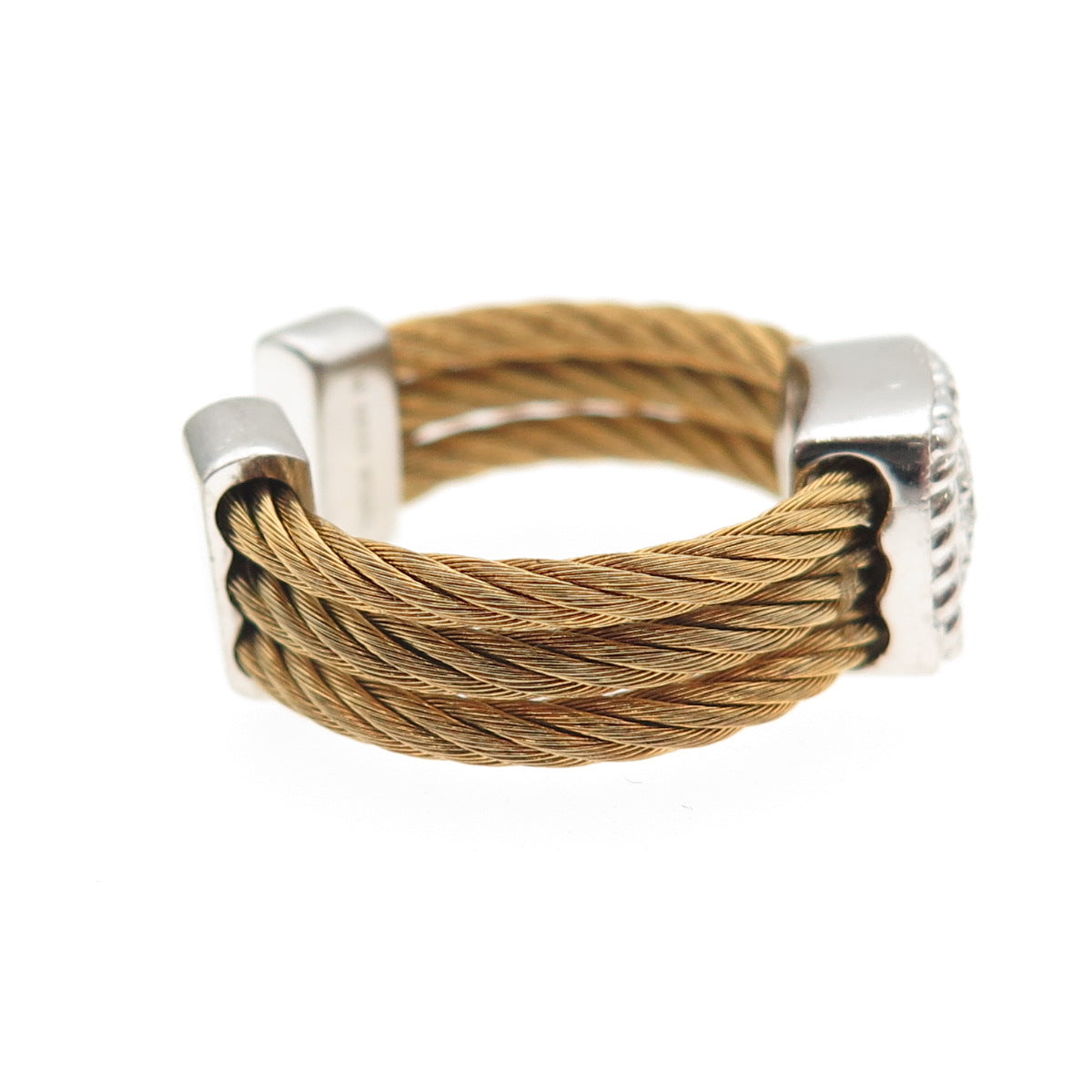 925 Sterling Silver & Steel 2-Tone Real Diamond Adjustable Ring Size 6.75-10.5