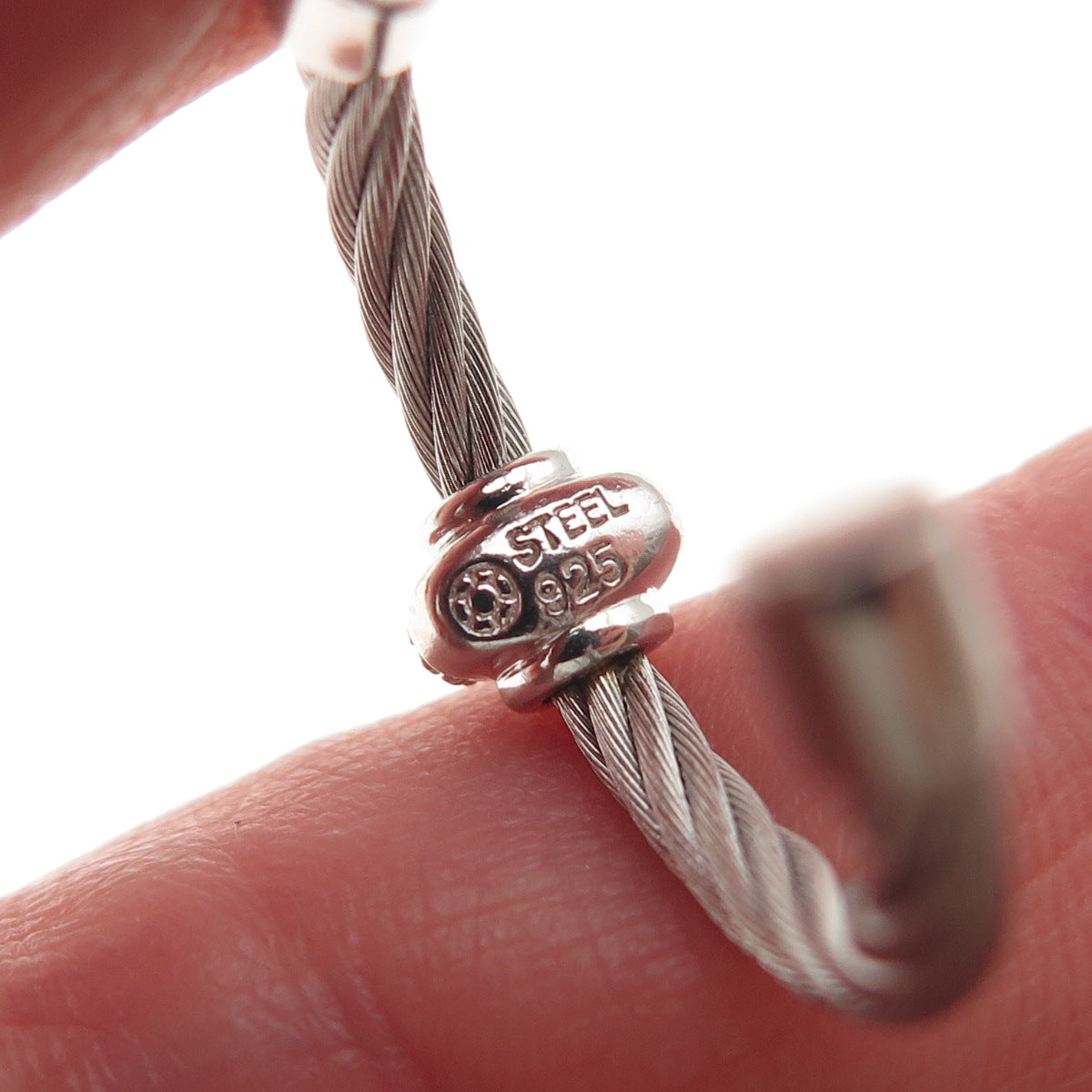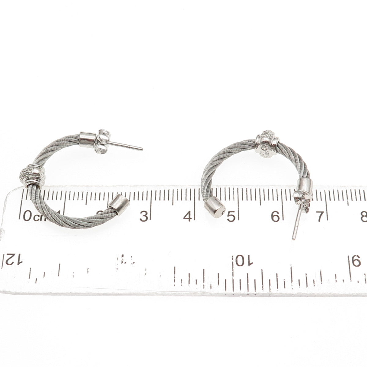 925 Sterling Silver & Steel Real Round-Cut Diamond Hoop Earrings