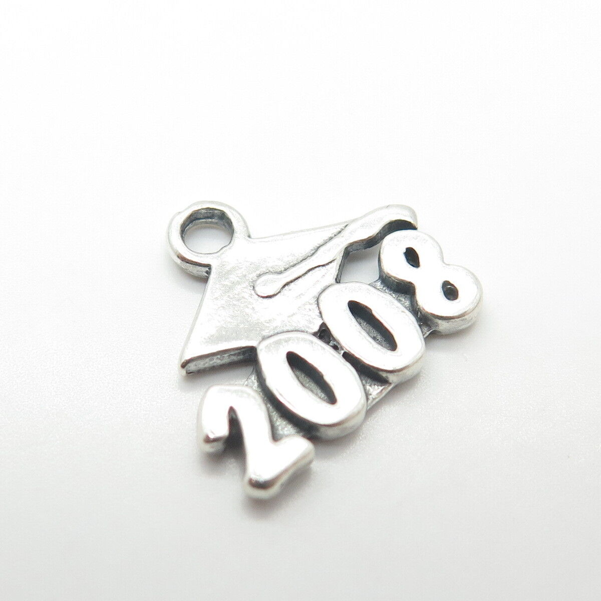 925 Sterling Silver Vintage "2008" Graduation Cap Charm Pendant
