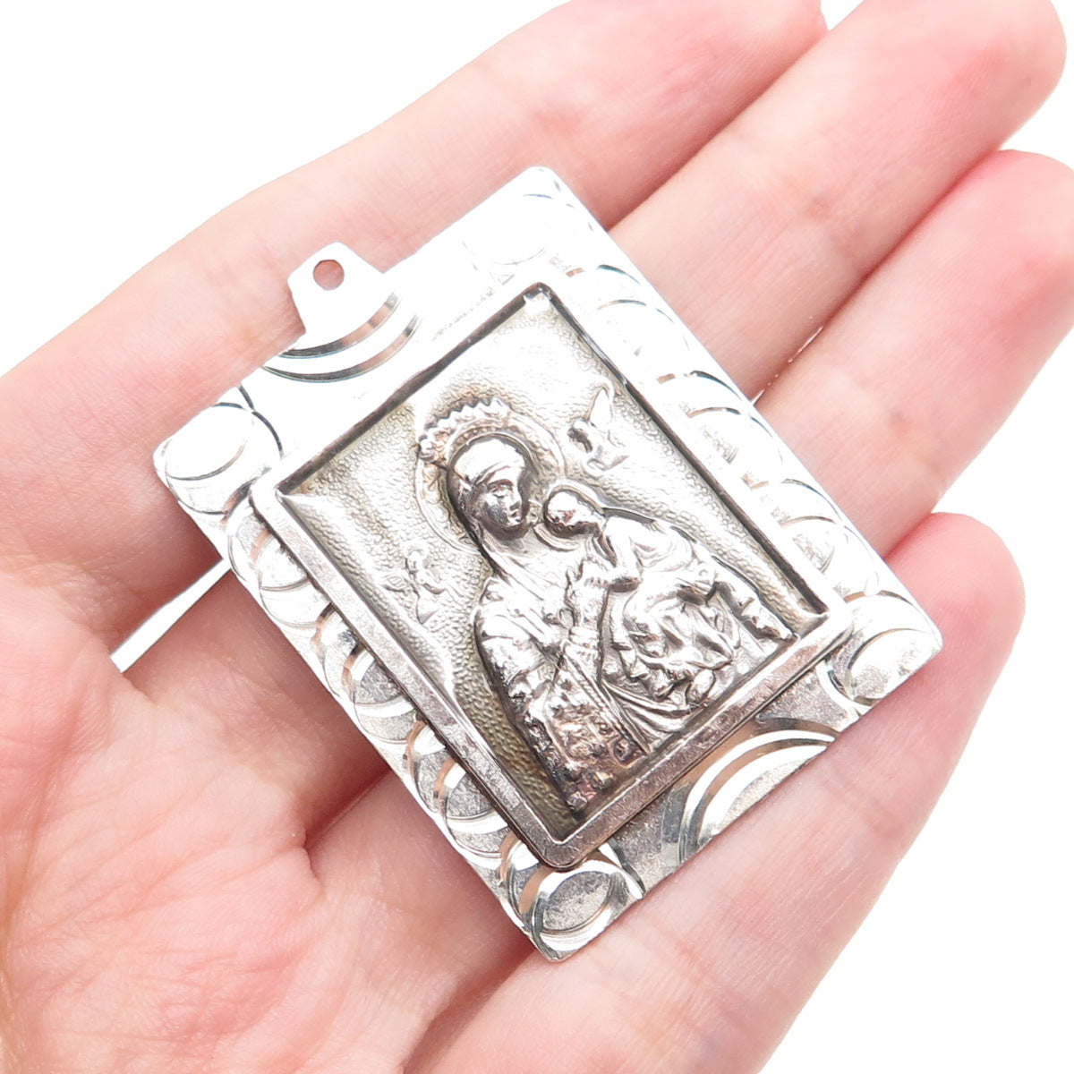925 Sterling Silver Vintage A90 St. Mary & Jesus Religious Medal Charm Pendant