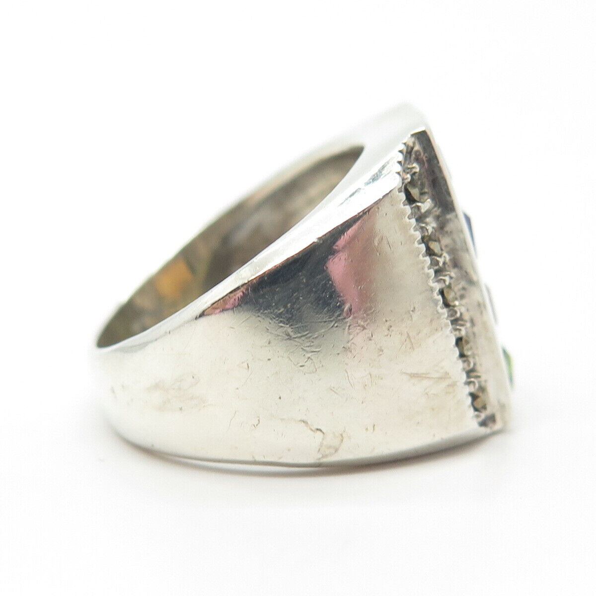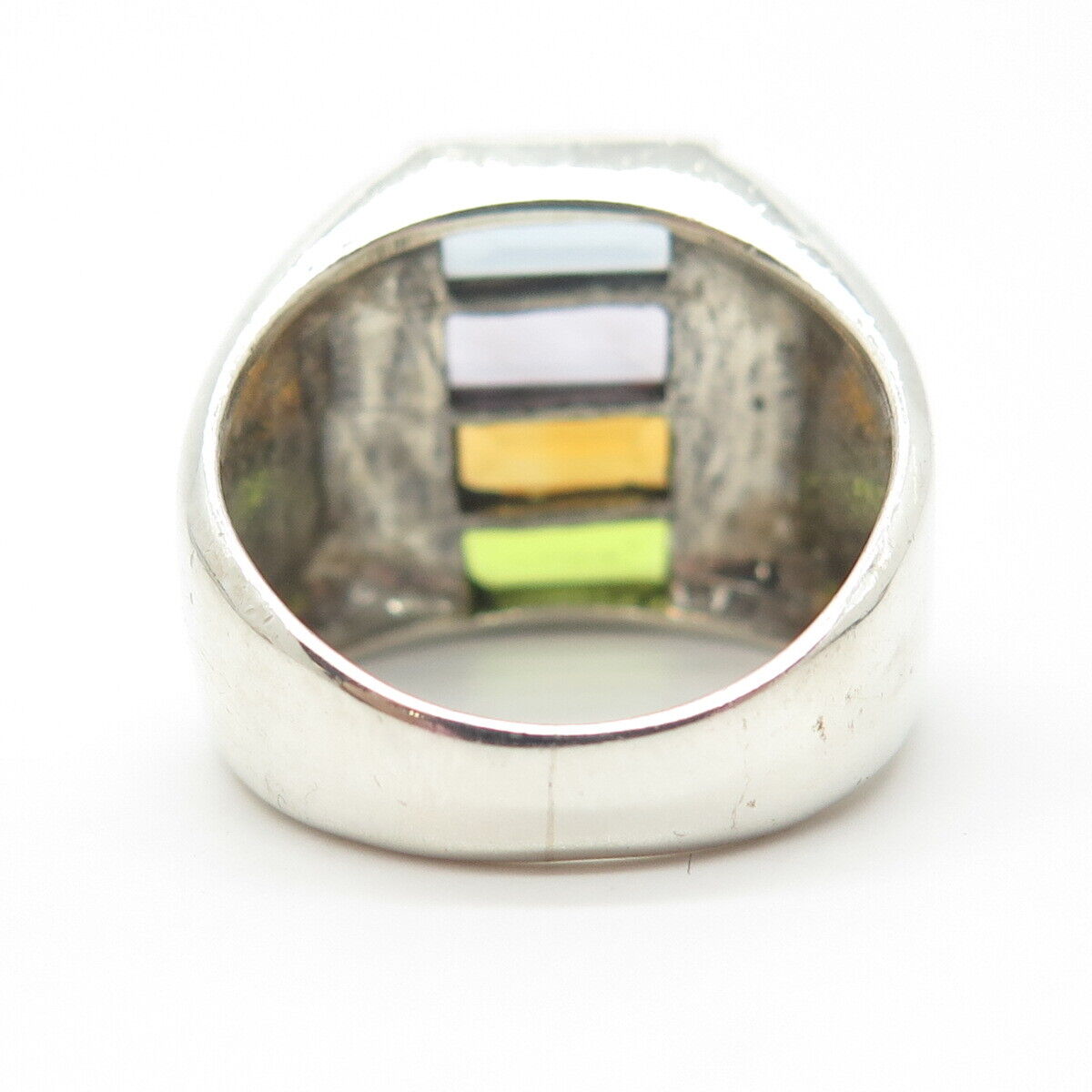 925 Sterling Silver Vintage Amethyst Citrine Peridot Topaz Gem Ring Size 6.75