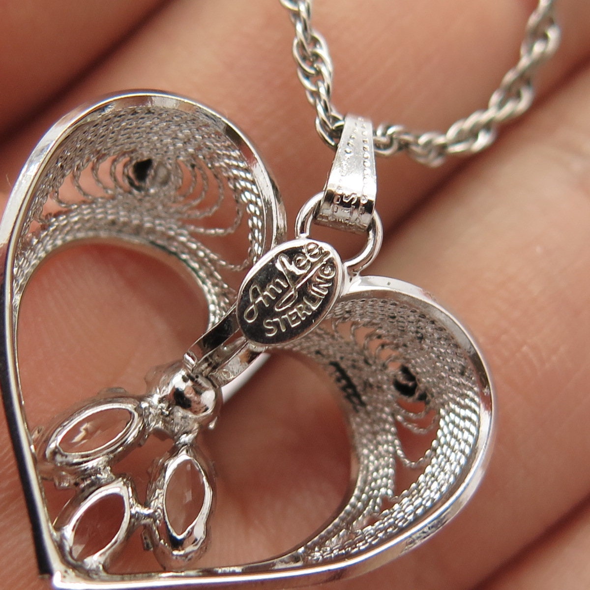 925 Sterling Silver Vintage Anna Lee Amethyst Gem Heart Rolo Chain Necklace 16"