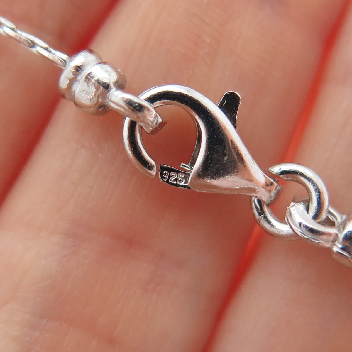 925 Sterling Silver Vintage Ball Beaded Flower Round Box Chain Necklace 18"