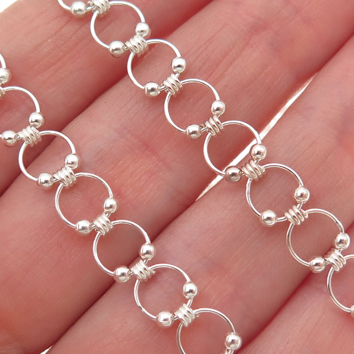 925 Sterling Silver Vintage Beaded Circle Chain Necklace 12-16"