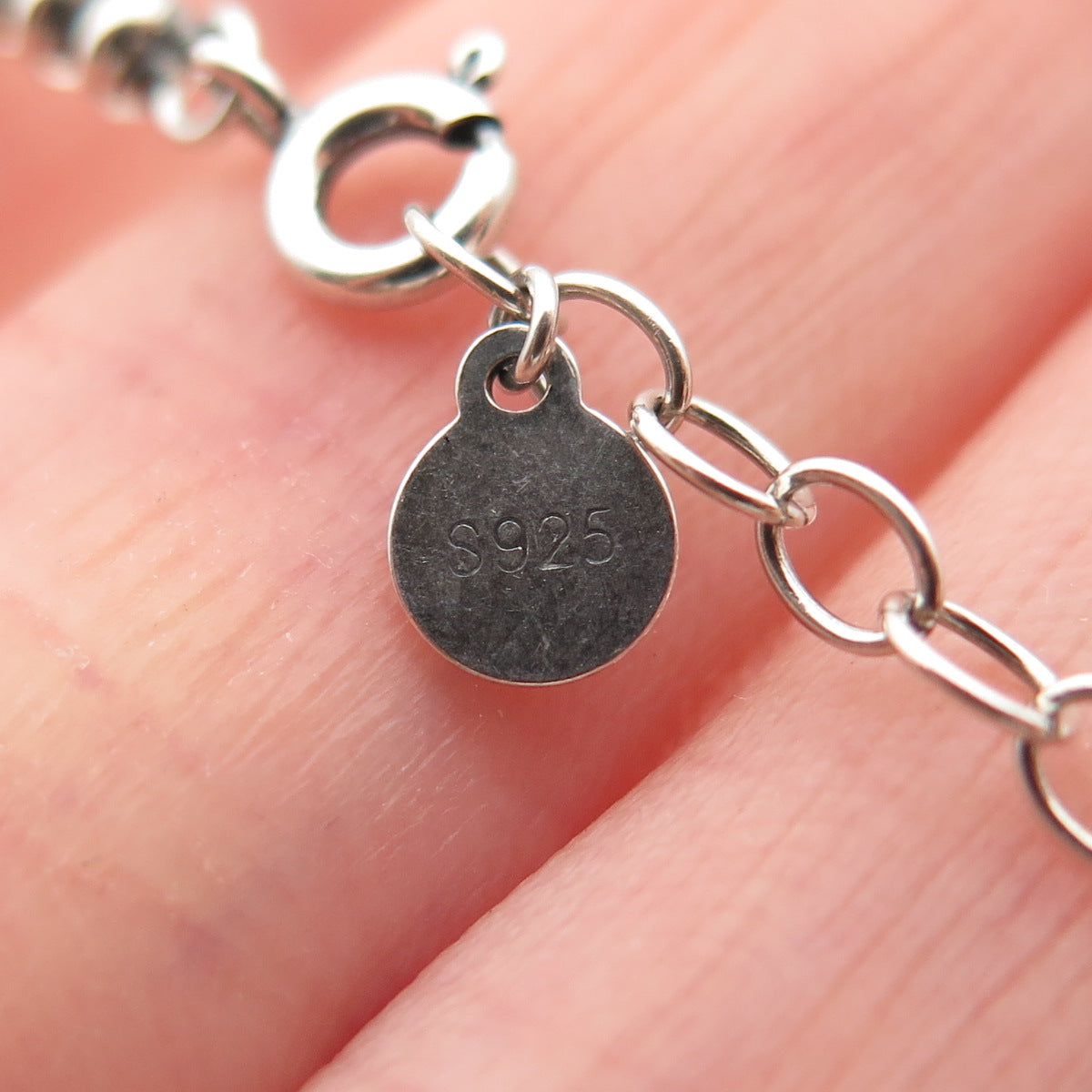 925 Sterling Silver Vintage Beaded Link Bracelet 7.25"