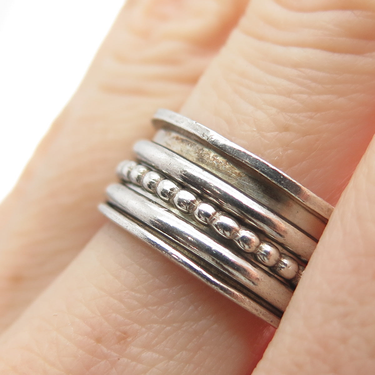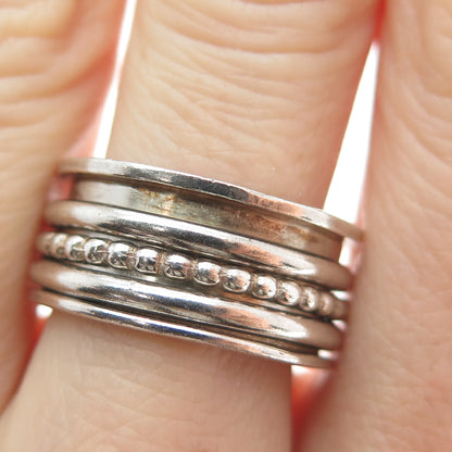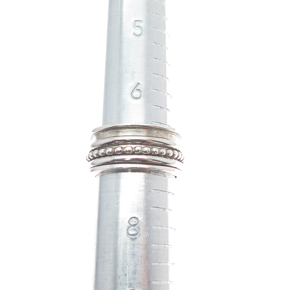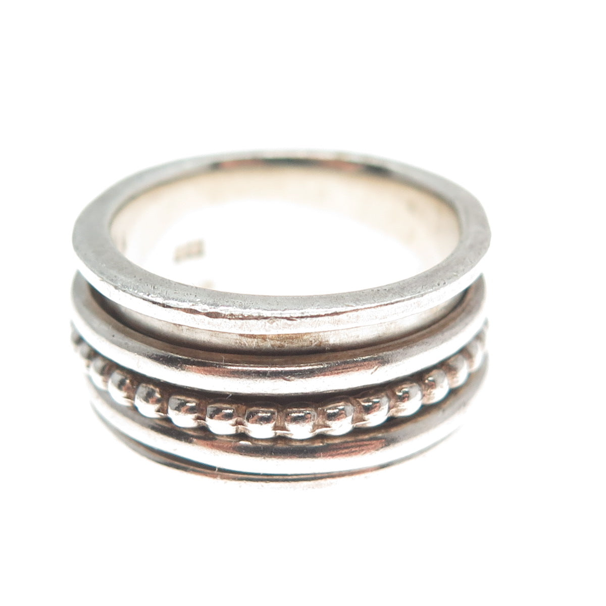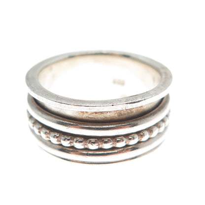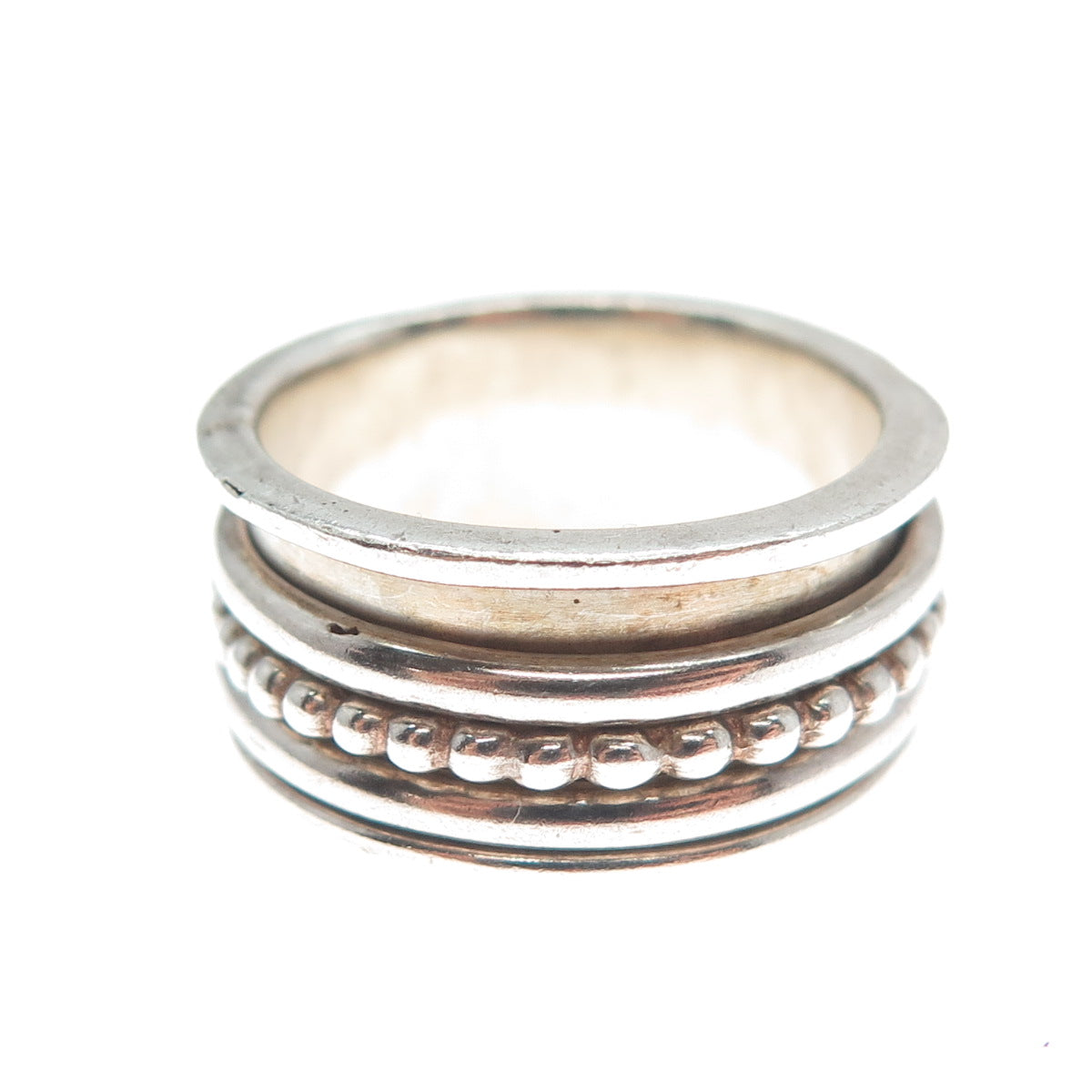 925 Sterling Silver Vintage Beaded Rotating Band Ring Size 7.25