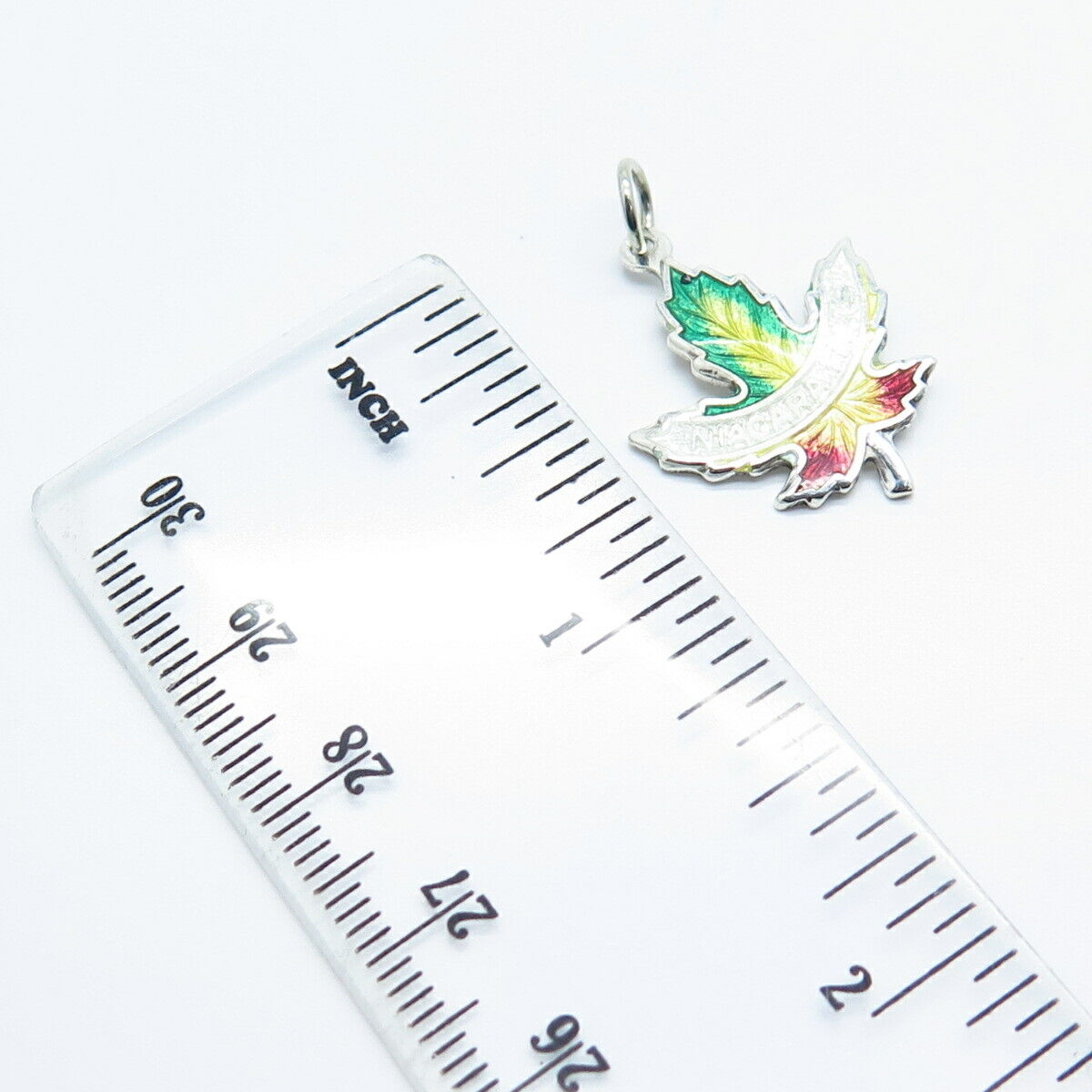 925 Sterling Silver Vintage BMCo Enamel "Niagara Falls" Maple Leaf Pendant