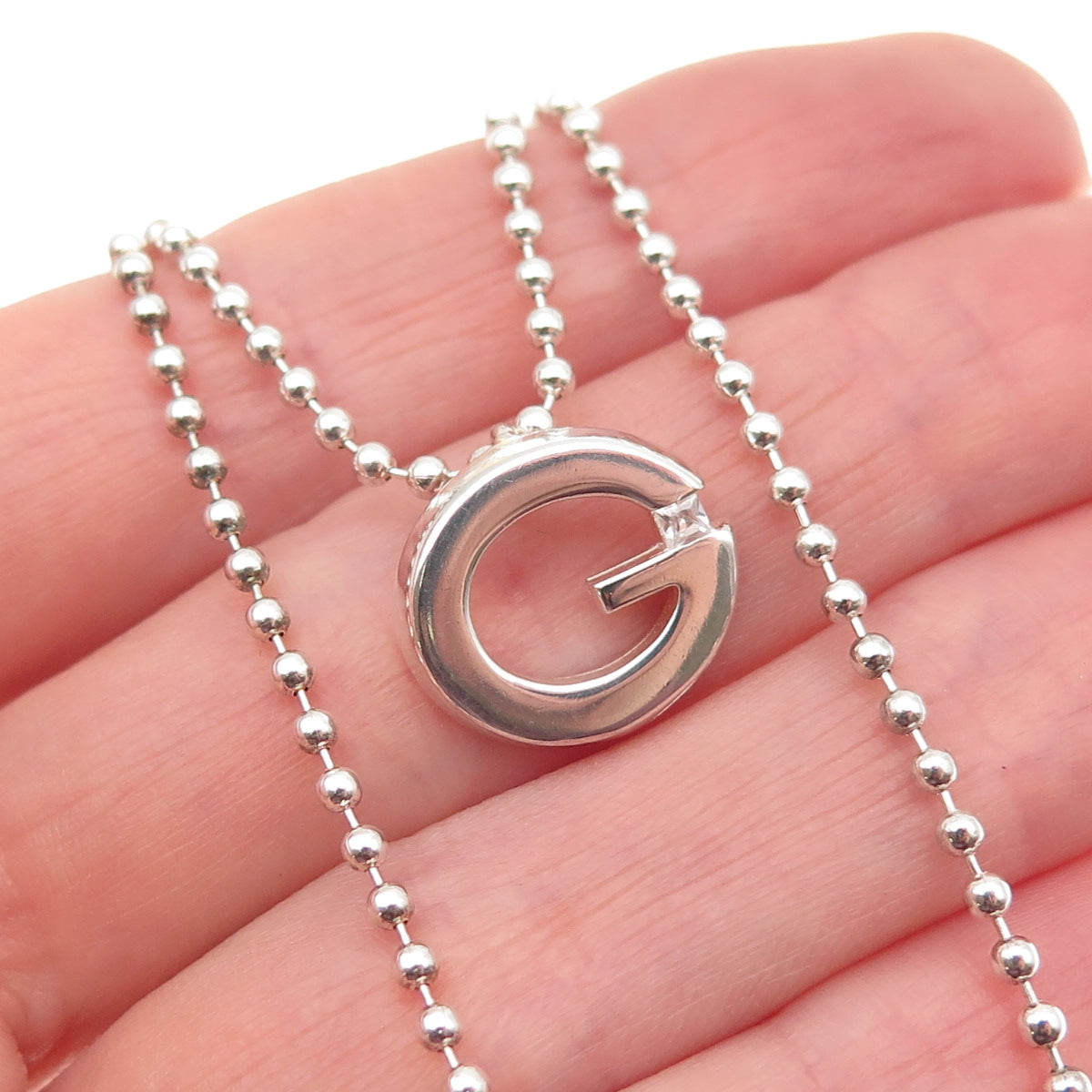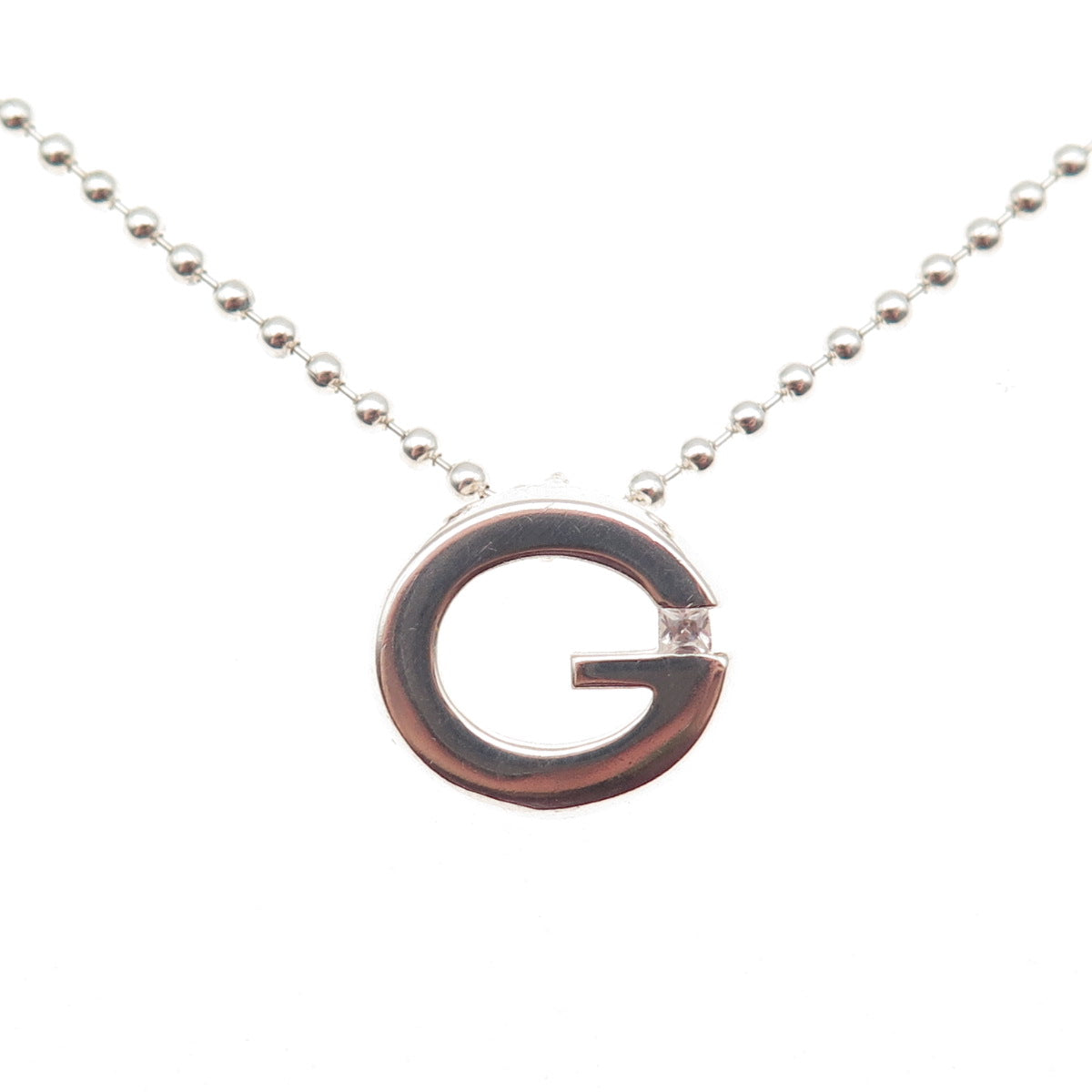 925 Sterling Silver Vintage C Z Letter G Initial Ball Beaded Chain Necklace 16"