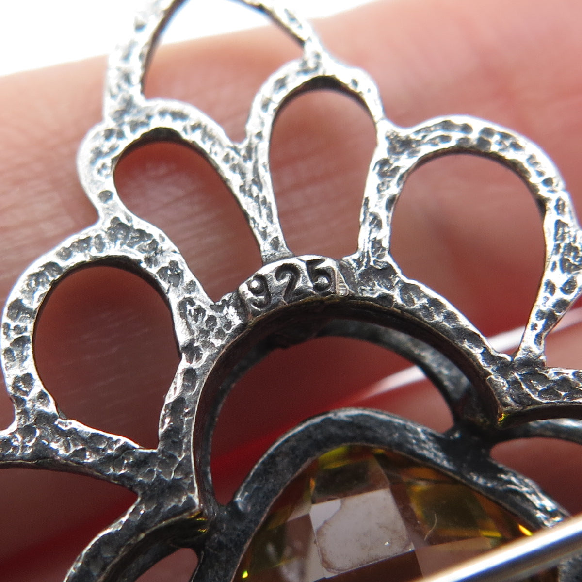 925 Sterling Silver Vintage Canary C Z Floral Cross Pin Brooch / Pendant