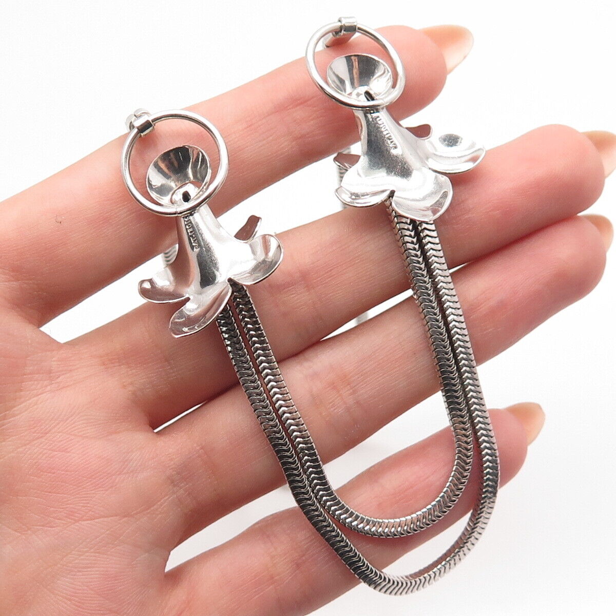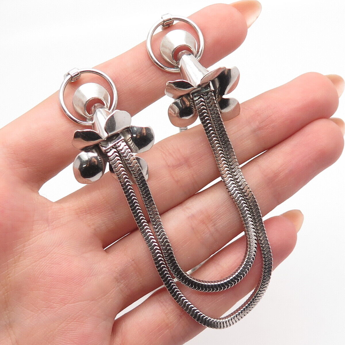 925 Sterling Silver Vintage Carl Art Floral Station Snake Chain Necklace 16"