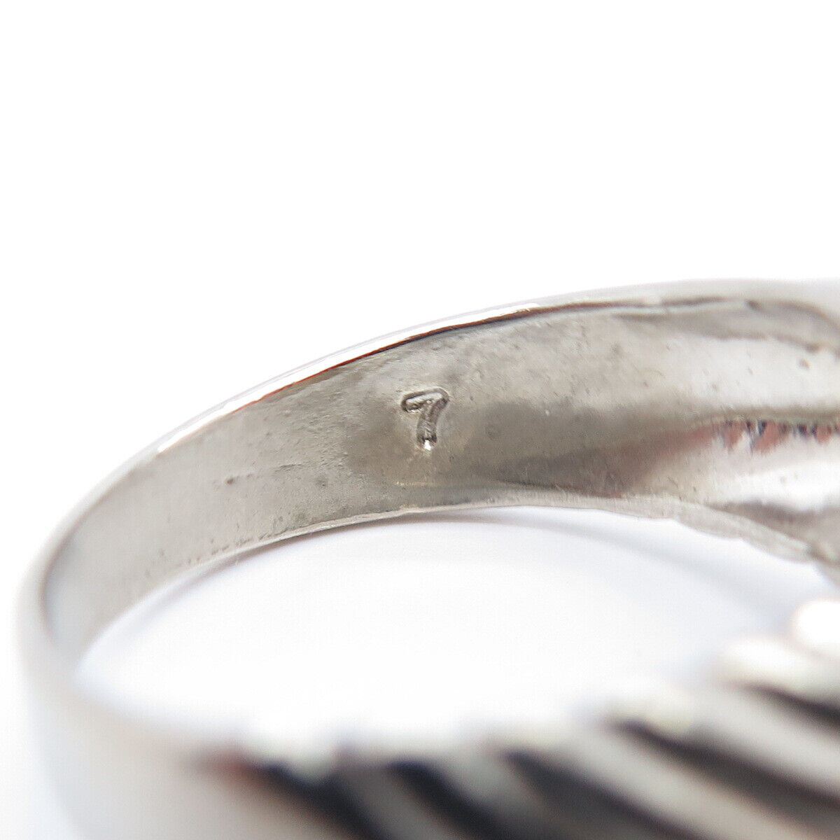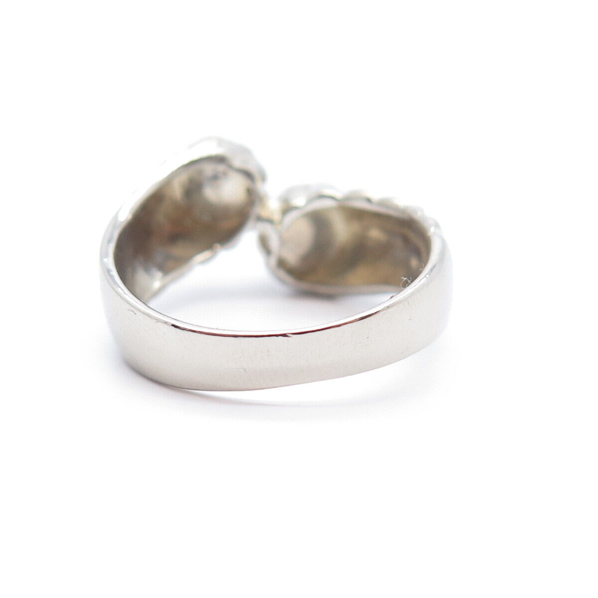 925 Sterling Silver Vintage Carnelian & Faux Star Sapphire Bypass Ring Size 7.25