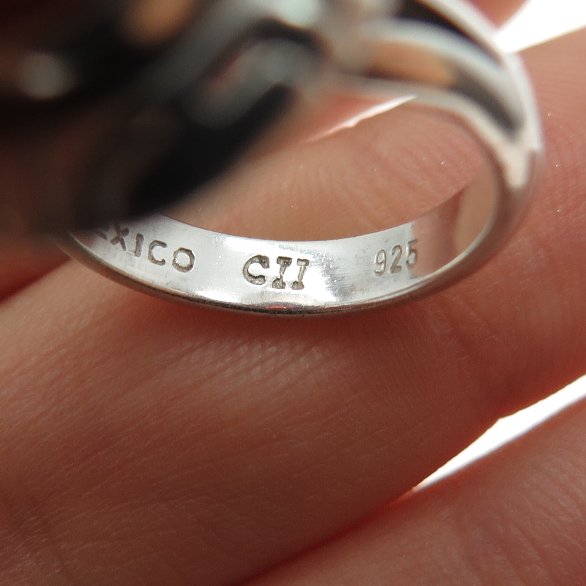 925 Sterling Silver Vintage CII Mexico Real Carnelian Tribal Ring Size 6.25
