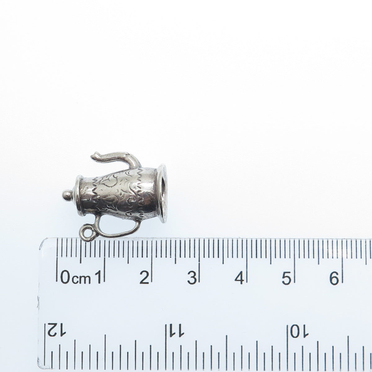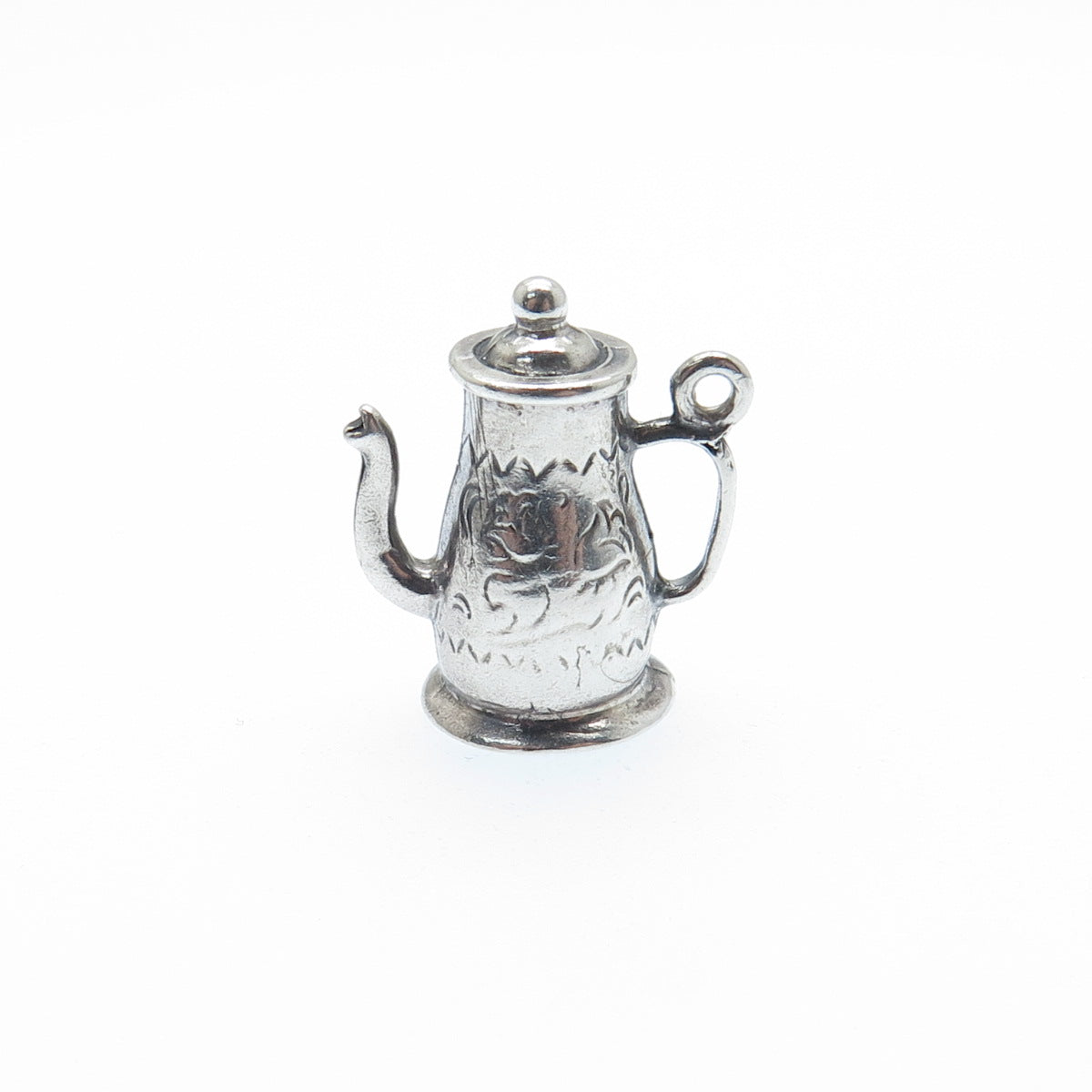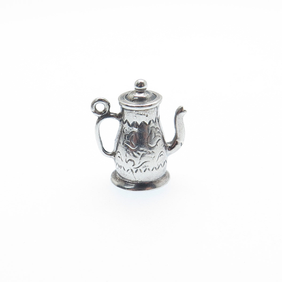925 Sterling Silver Vintage Coffeepot Oxidized Minimalist 3D Charm Pendant