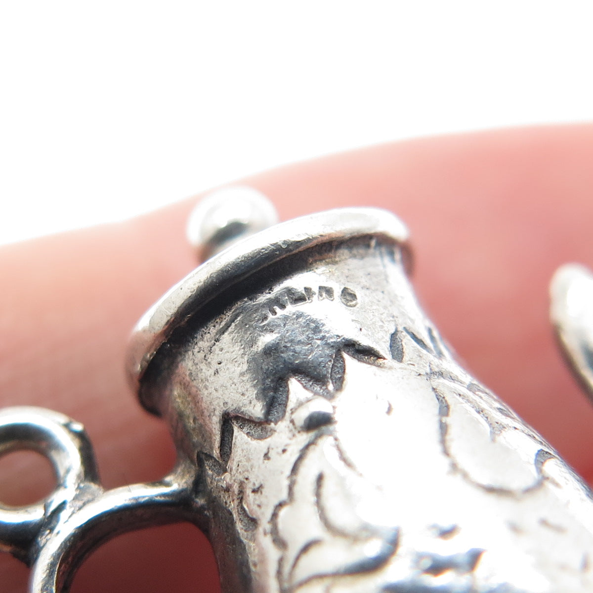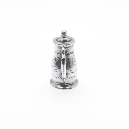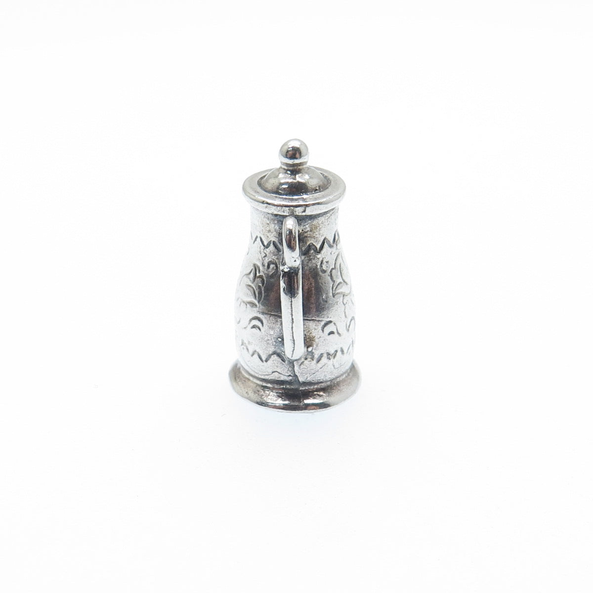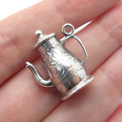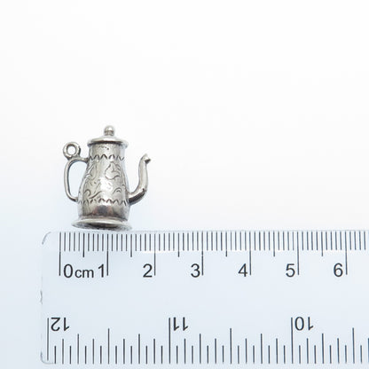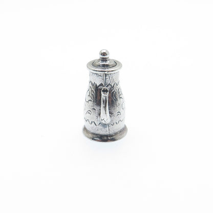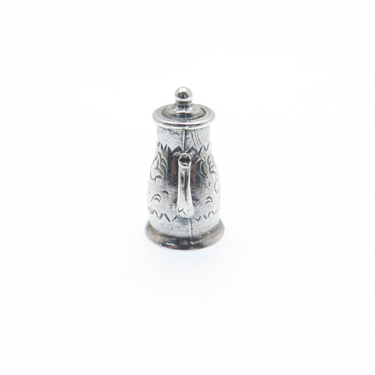 925 Sterling Silver Vintage Coffeepot Oxidized Minimalist 3D Charm Pendant