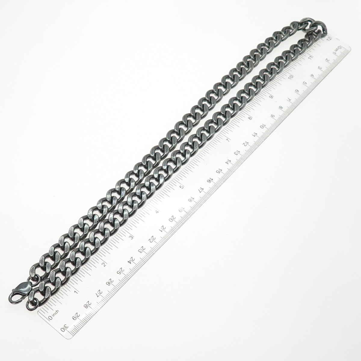 925 Sterling Silver Vintage Cuban Chain Heavy 197.6g Oxidized Necklace 25"
