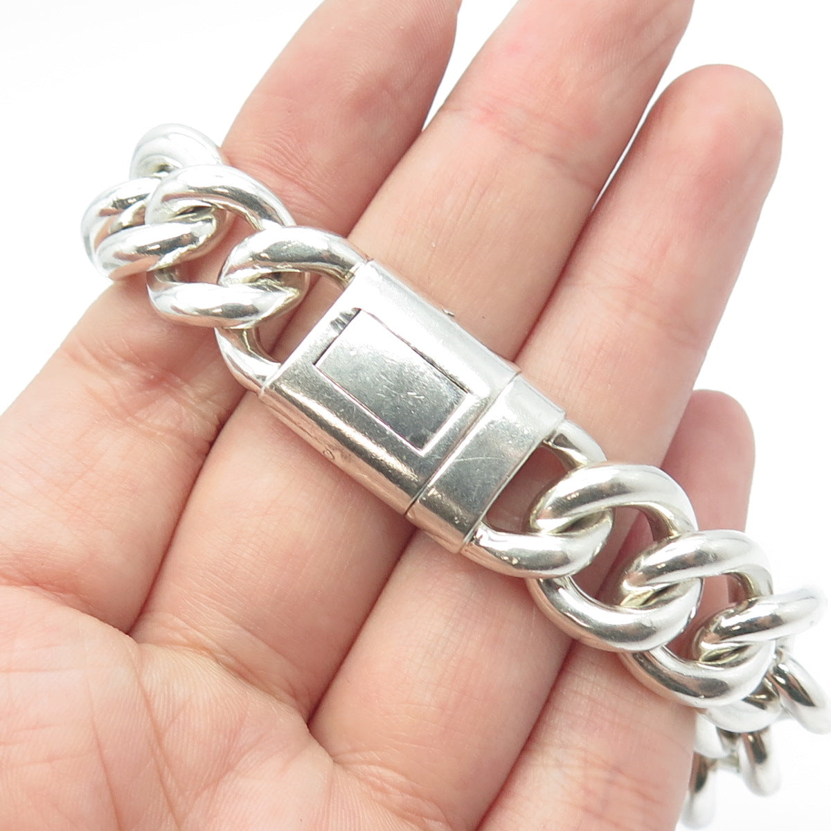 925 Sterling Silver Vintage Cuban Link Solid Chain 89.1g Bracelet 7"