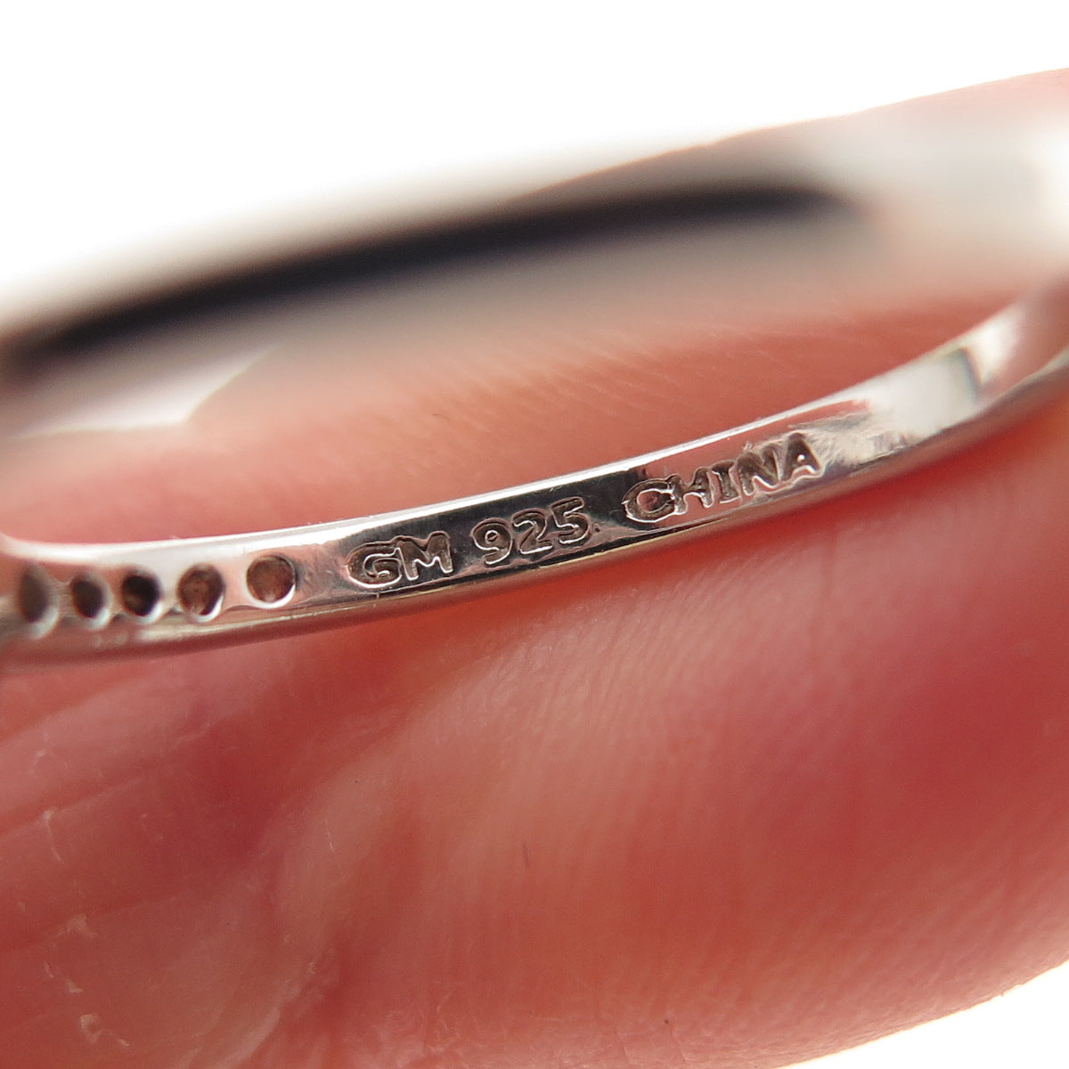 925 Sterling Silver Vintage Cushion-Cut Blue Round-Cut White C Z Ring Size 6.75