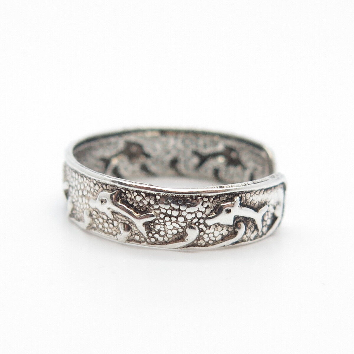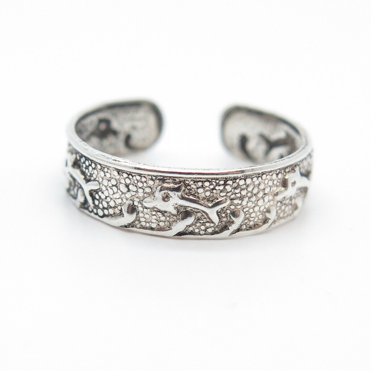925 Sterling Silver Vintage Dolphin Adjustable Toe Ring Size 5.5