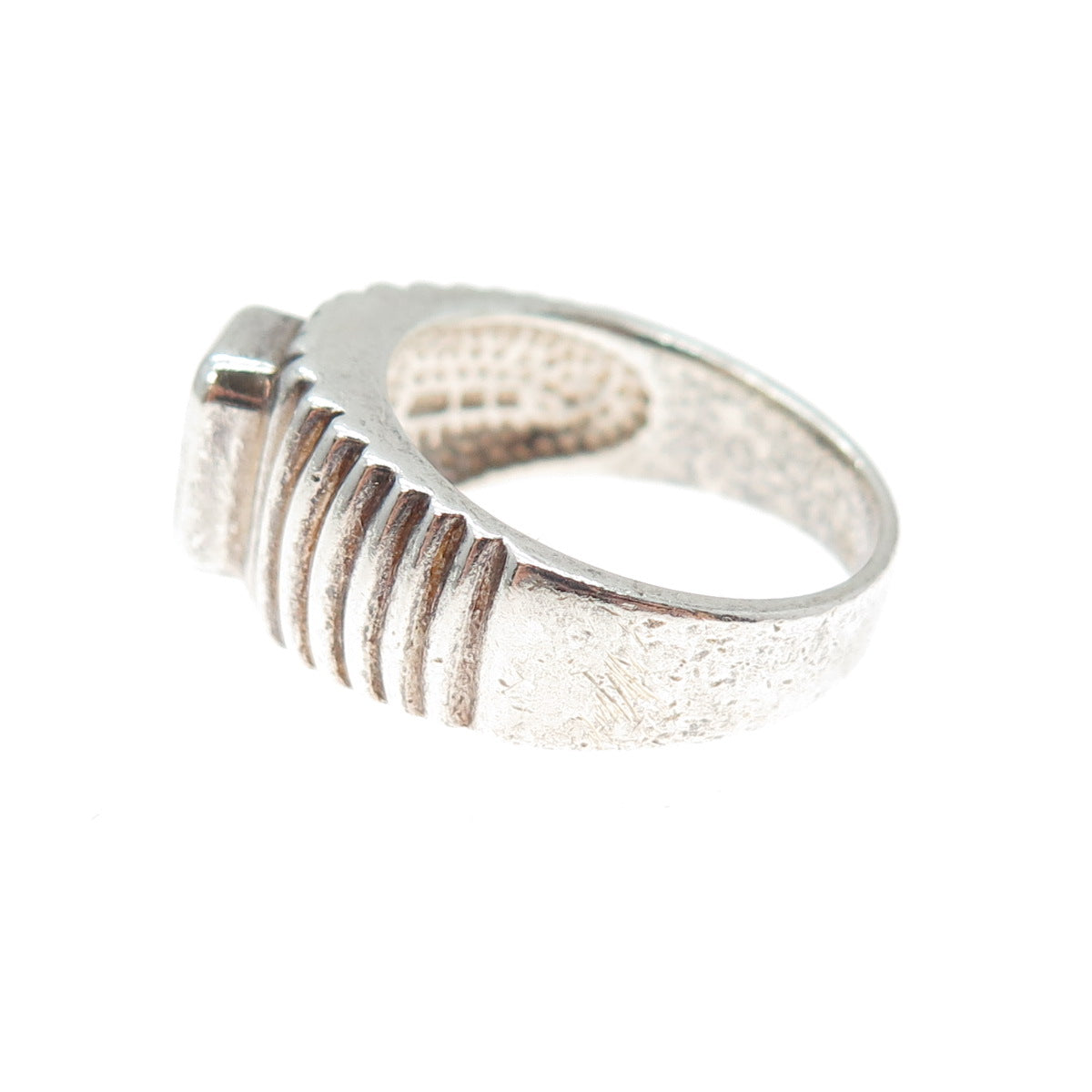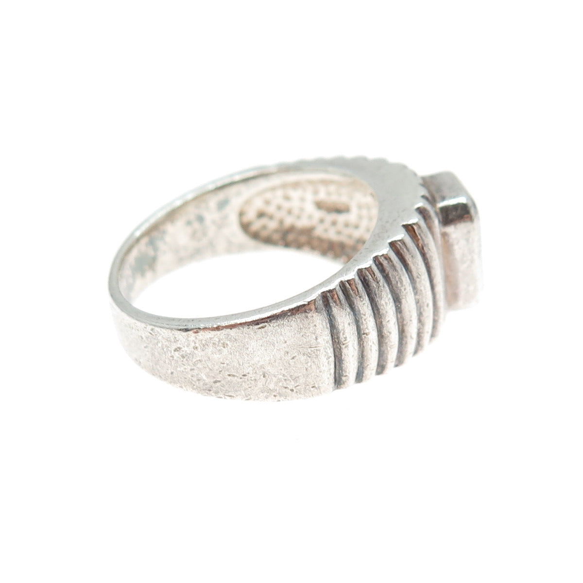 925 Sterling Silver Vintage Emerald-Cut C Z Ribbed Ring Size 8.25