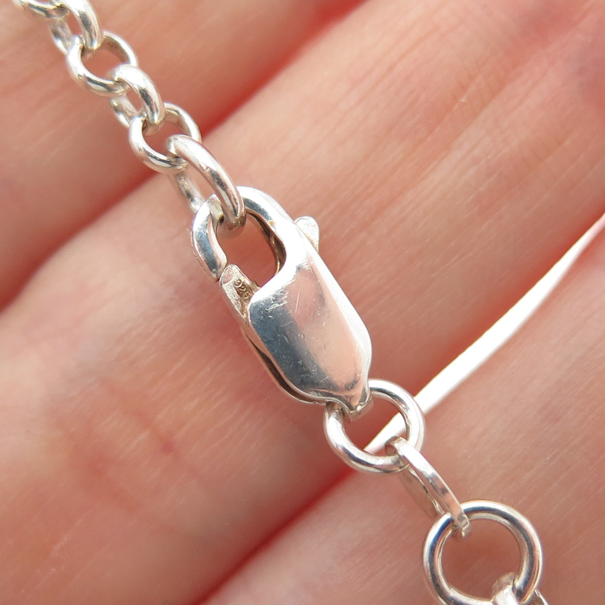 925 Sterling Silver Vintage Enamel Wood Bar Rolo Link Bracelet 6.25"