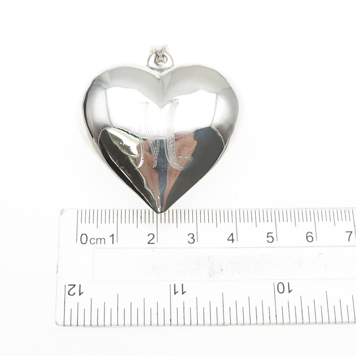 925 Sterling Silver Vintage Engraved Letter M Initial Puffy Heart Pendant